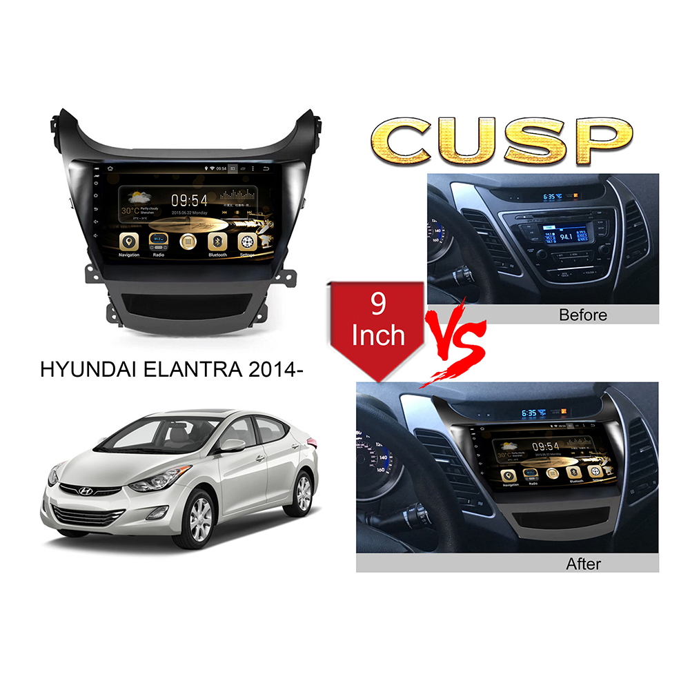 CUSP HYUNDAI ELANTRA / AVANTE / MD 2014- 9 Inch HD IPS Screen Android Car Stereo Radio GPS Navigation Multimedia Player Tablet with Car Play and Android Auto, Bluetooth,FM,AM, RDS, GPS, WIFI, DSP, Audio, Video,Google, Youtube, Play Store, Netflix, Support Rear Camera,in Dash Kit