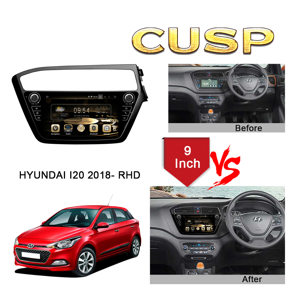 CUSP HYUNDAI I20 2018- RHD 9 Inch HD IPS Screen Android Car Stereo Radio GPS Navigation Multimedia Player Tablet with Car Play and Android Auto, Bluetooth,FM,AM, RDS, GPS, WIFI, DSP, Audio, Video,Google, Youtube, Play Store, Netflix, Support Rear Camera,in Dash Kit