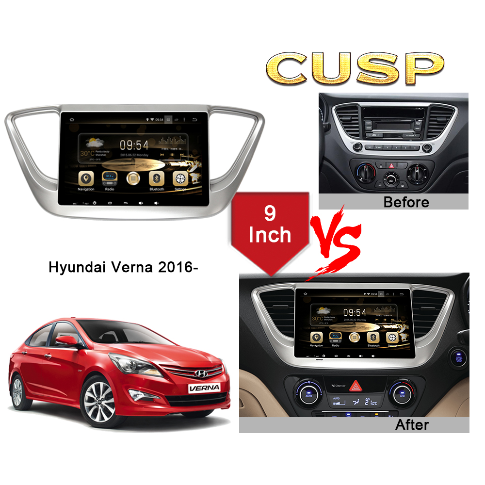CUSP Hyundai Verna 2016- 9 Inch HD IPS Screen Android Car Stereo Radio GPS Navigation Multimedia Player Tablet with Car Play and Android Auto, Bluetooth,FM,AM, RDS, GPS, WIFI, DSP, Audio, Video,Google, Youtube, Play Store, Netflix, Support Rear Camera,in Dash Kit