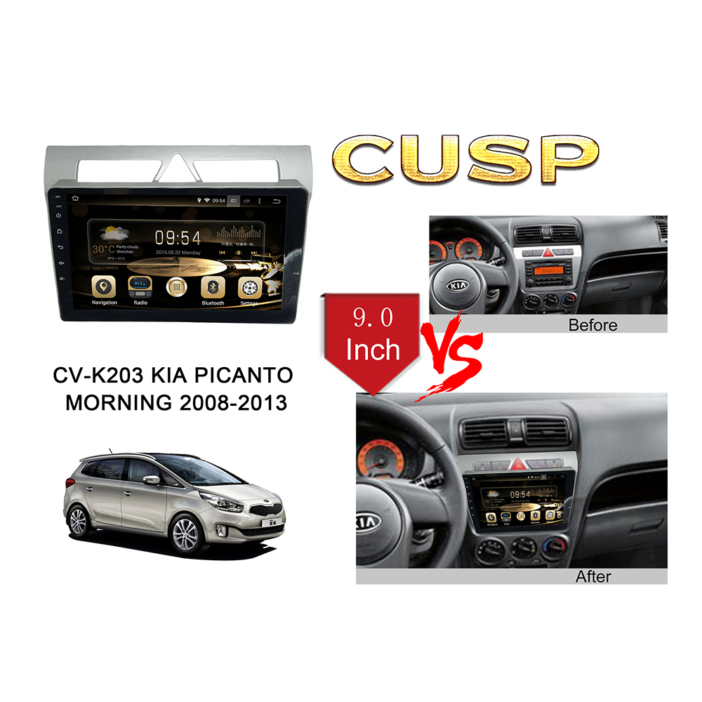 CUSP KIA PICANTO MORNING 2008-2013 9 Inch HD IPS Screen Android Car Stereo Radio GPS Navigation Multimedia Player Tablet with Car Play and Android Auto, Bluetooth,FM,AM, RDS, GPS, WIFI, DSP, Audio, Video,Google, Youtube, Play Store, Netflix, Support Rear Camera,in Dash Kit