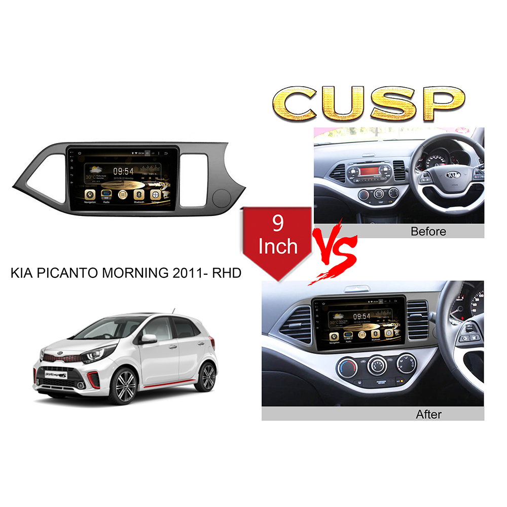 CUSP KIA PICANTO MORNING 2011- RHD 9 Inch HD IPS Screen Android Car Stereo Radio GPS Navigation Multimedia Player Tablet with Car Play and Android Auto, Bluetooth,FM,AM, RDS, GPS, WIFI, DSP, Audio, Video,Google, Youtube, Play Store, Netflix, Support Rear Camera,in Dash Kit