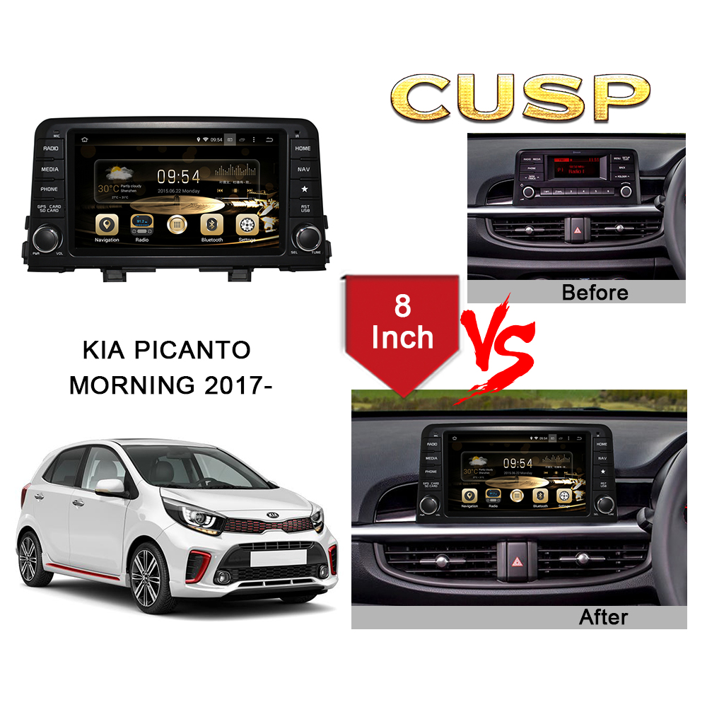 CUSP KIA PICANTO MORNING 2017- 8 Inch HD IPS Screen Android Car Stereo Radio GPS Navigation Multimedia Player Tablet with Car Play and Android Auto, Bluetooth,FM,AM, RDS, GPS, WIFI, DSP, Audio, Video,Google, Youtube, Play Store, Netflix, Support Rear Camera,in Dash Kit