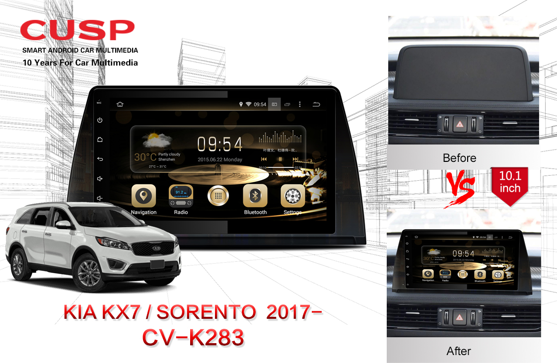 CUSP KIA KX7 / SORENTO 2017- 10.1 Inch HD IPS Screen Android Car Stereo Radio GPS Navigation Multimedia Player Tablet with Car Play and Android Auto, Bluetooth,FM,AM, RDS, GPS, WIFI, DSP, Audio, Video,Google, Youtube, Play Store, Netflix, Support Rear Camera,in Dash Kit