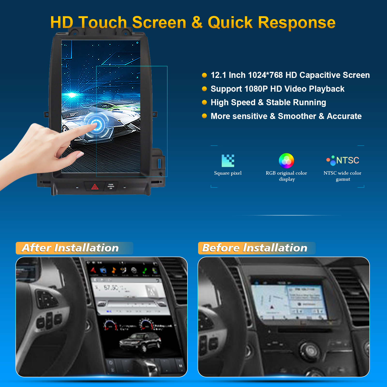 CUSP Ford Taurus 2012-2016 high level 13.3 Inch HD IPS Screen Android Car Stereo Radio GPS Navigation Multimedia Player Tablet Tesla Style Vertical Screen with Car Play and Android Auto, Bluetooth,FM,AM, RDS, GPS, WIFI, DSP, Audio, Video,Google, Youtube, Play Store, Netflix, Support Rear Camera,in Dash Kit