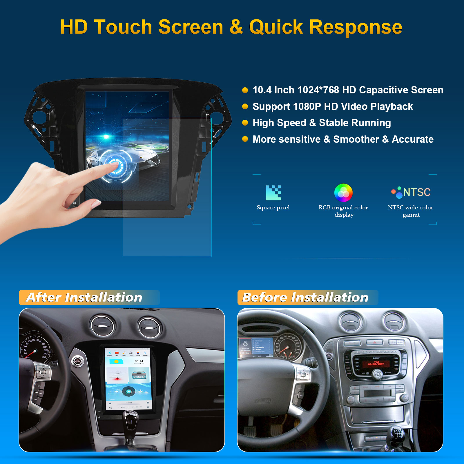 CUSP FORD Mondeo 2007-2012 10.4 Inch HD IPS Screen Android Car Stereo Radio GPS Navigation Multimedia Player Tablet Tesla Style Vertical Screen with Car Play and Android Auto, Bluetooth,FM,AM, RDS, GPS, WIFI, DSP, Audio, Video,Google, Youtube, Play Store, Netflix, Support Rear Camera,in Dash Kit