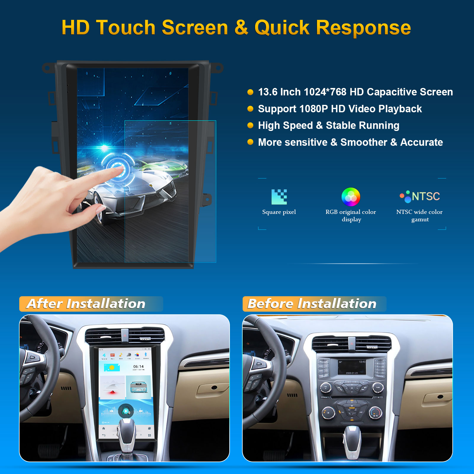 CUSP Ford Mondeo Fusion MK5 2013- AUTO A/C 13.6 Inch HD IPS Screen Android Car Stereo Radio GPS Navigation Multimedia Player Tablet Tesla Style Vertical Screen with Car Play and Android Auto, Bluetooth,FM,AM, RDS, GPS, WIFI, DSP, Audio, Video,Google, Youtube, Play Store, Netflix, Support Rear Camera,in Dash Kit