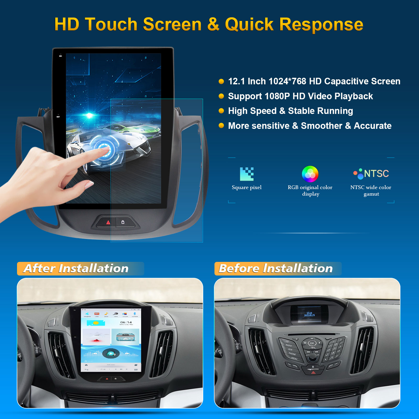 CUSP FORD KUGA / Escape 2013-(Second generation)12.1 Inch HD IPS Screen Android Car Stereo Radio GPS Navigation Multimedia Player Tablet Tesla Style Vertical Screen with Car Play and Android Auto, Bluetooth,FM,AM, RDS, GPS, WIFI, DSP, Audio, Video,Google, Youtube, Play Store, Netflix, Support Rear Camera,in Dash Kit