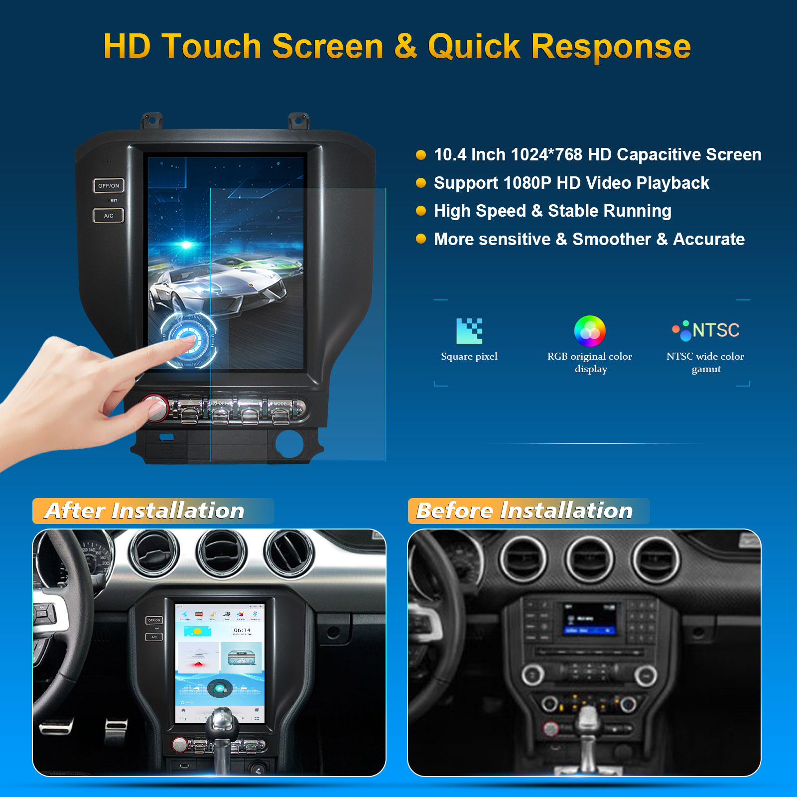 CUSP Ford Mustang 2015- 10.4 Inch HD IPS Screen Android Car Stereo Radio GPS Navigation Multimedia Player Tablet Tesla Style Vertical Screen with Car Play and Android Auto, Bluetooth,FM,AM, RDS, GPS, WIFI, DSP, Audio, Video,Google, Youtube, Play Store, Netflix, Support Rear Camera,in Dash Kit