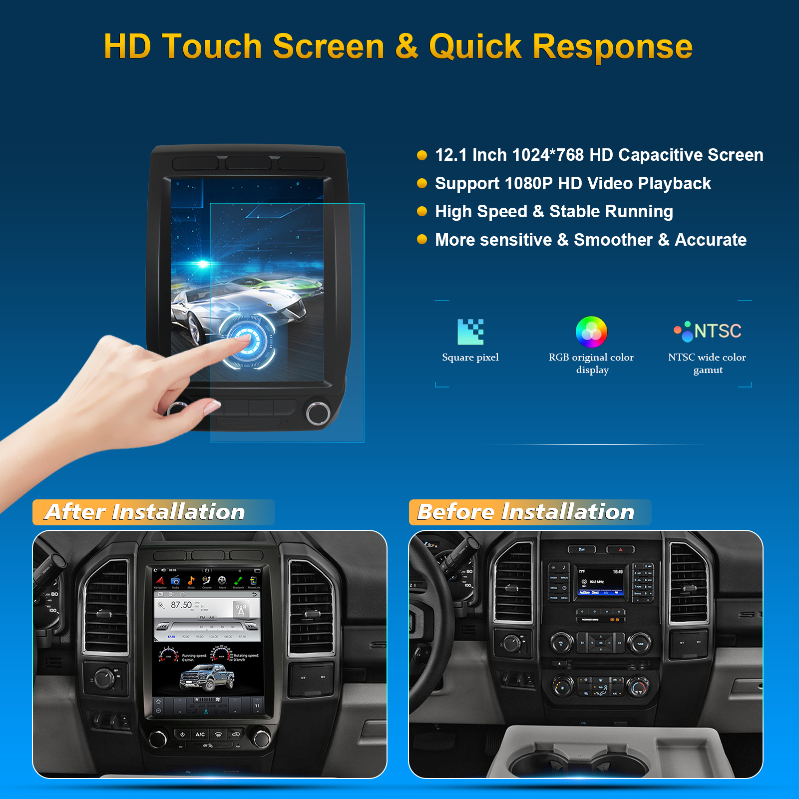 CUSP Ford F150 /Raptor 2015-/2018- 12.1 Inch HD IPS Screen Android Car Stereo Radio GPS Navigation Multimedia Player Tablet Tesla Style Vertical Screen with Car Play and Android Auto, Bluetooth,FM,AM, RDS, GPS, WIFI, DSP, Audio, Video,Google, Youtube, Play Store, Netflix, Support Rear Camera,in Dash Kit