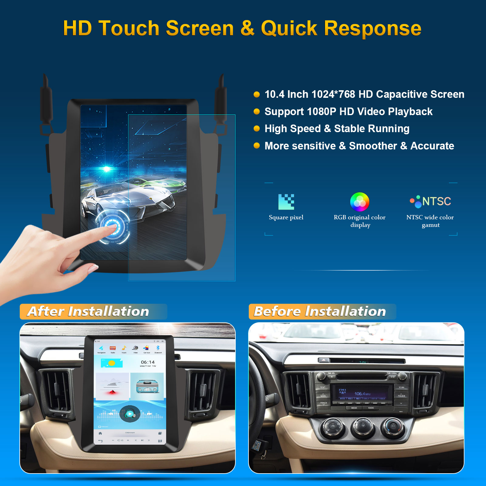 CUSP TOYOTA RAV4 2013- 10.4 Inch HD IPS Screen Android Car Stereo Radio GPS Navigation Multimedia Player Tablet Tesla Style Vertical Screen with Car Play and Android Auto, Bluetooth,FM,AM, RDS, GPS, WIFI, DSP, Audio, Video,Google, Youtube, Play Store, Netflix, Support Rear Camera,in Dash Kit