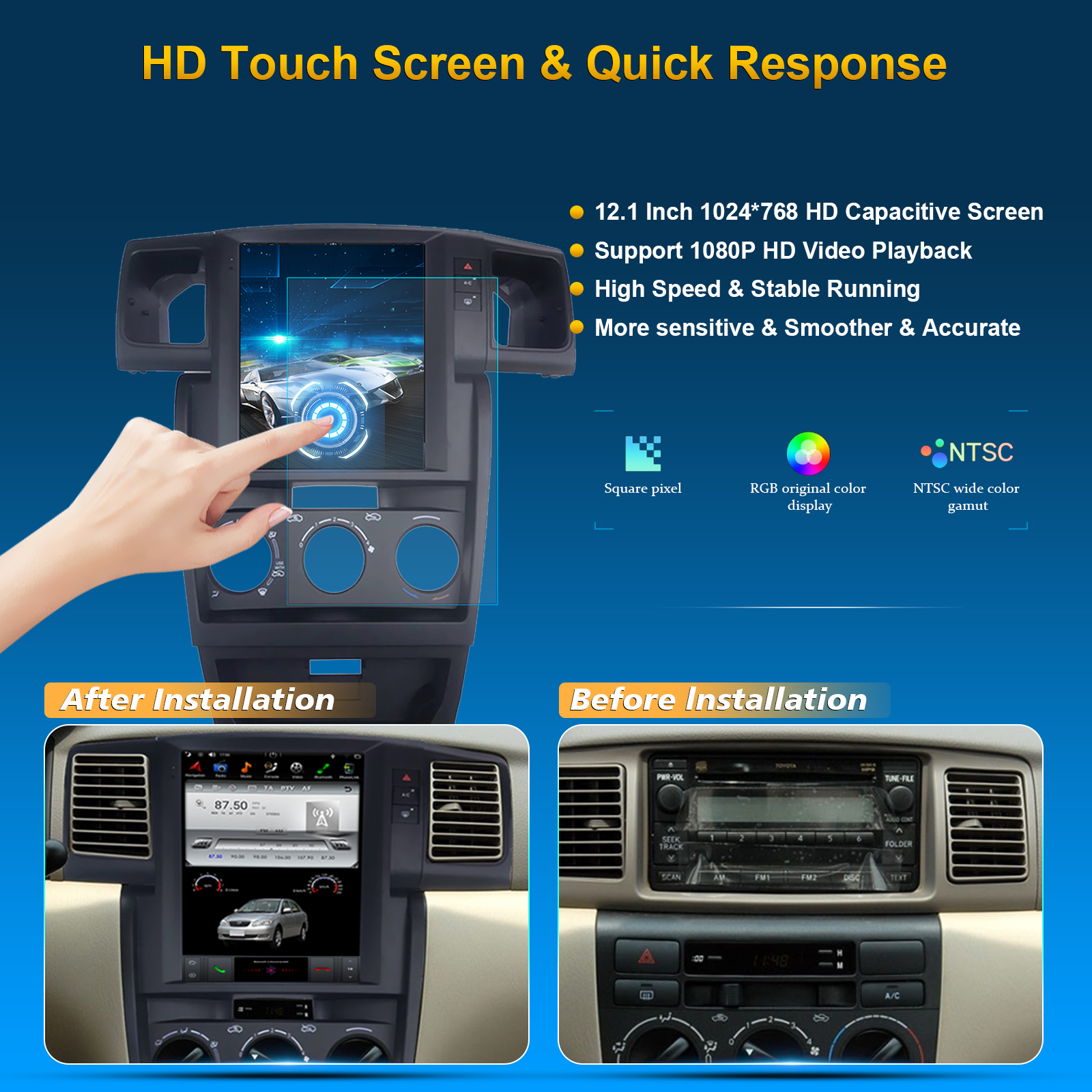 CUSP TOYOTA COROLLA 2006- 10.4 Inch HD IPS Screen Android Car Stereo Radio GPS Navigation Multimedia Player Tablet Tesla Style Vertical Screen with Car Play and Android Auto, Bluetooth,FM,AM, RDS, GPS, WIFI, DSP, Audio, Video,Google, Youtube, Play Store, Netflix, Support Rear Camera,in Dash Kit