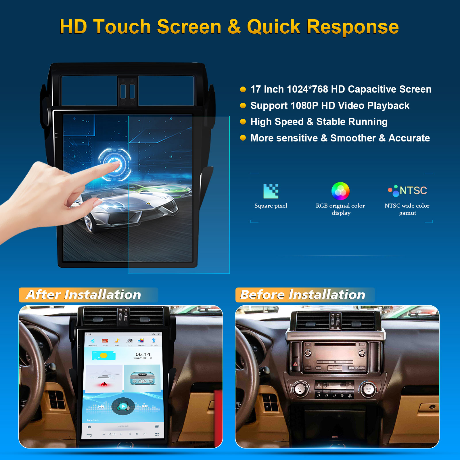 CUSP TOYOTA PRADO / LC150 / PRADO 150 2014- 17 Inch HD IPS Screen Android Car Stereo Radio GPS Navigation Multimedia Player Tablet Tesla Style Vertical Screen with Car Play and Android Auto, Bluetooth,FM,AM, RDS, GPS, WIFI, DSP, Audio, Video,Google, Youtube, Play Store, Netflix, Support Rear Camera,in Dash Kit