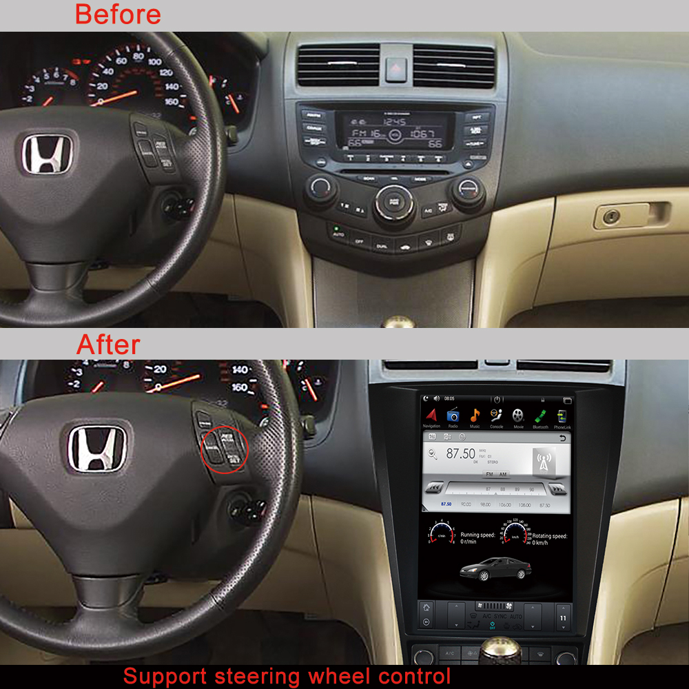 CUSP HONDA ACCORD 2003-2007 12.1 Inch HD IPS Screen Android Car Stereo Radio GPS Navigation Multimedia Player Tablet Tesla Style Vertical Screen with Car Play and Android Auto, Bluetooth,FM,AM, RDS, GPS, WIFI, DSP, Audio, Video,Google, Youtube, Play Store, Netflix, Support Rear Camera,in Dash Kit