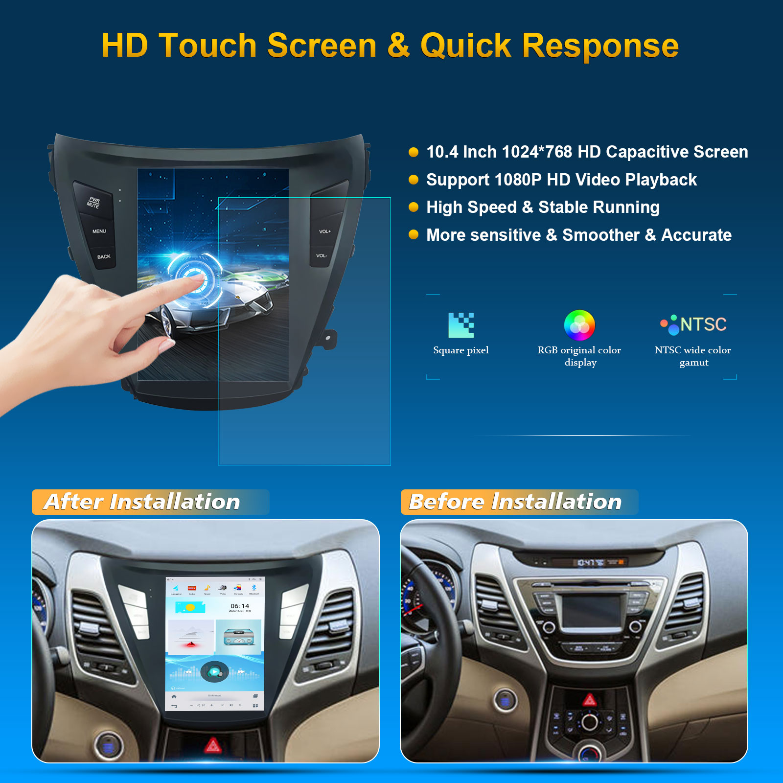 CUSP HYUNDAI ELANTRA 2014- 10.4 Inch HD IPS Screen Android Car Stereo Radio GPS Navigation Multimedia Player Tablet Tesla Style Vertical Screen with Car Play and Android Auto, Bluetooth,FM,AM, RDS, GPS, WIFI, DSP, Audio, Video,Google, Youtube, Play Store, Netflix, Support Rear Camera,in Dash Kit