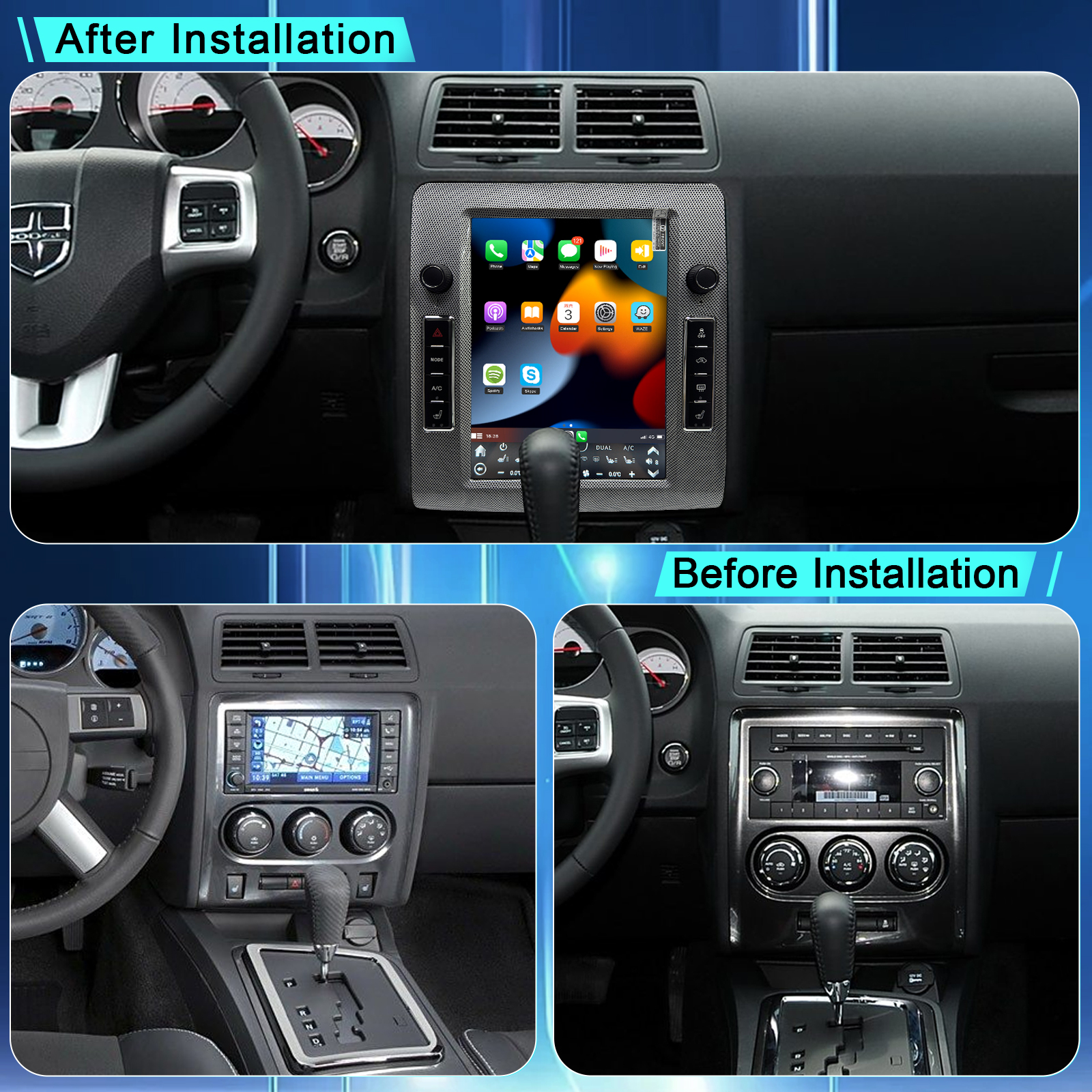 CUSP Dodge Challenger 2008-2014 10.4 Inch HD IPS Screen Android Car Stereo Radio GPS Navigation Multimedia Player Tablet Tesla Style Vertical Screen with Car Play and Android Auto, Bluetooth,FM,AM, RDS, GPS, WIFI, DSP, Audio, Video,Google, Youtube, Play Store, Netflix, Support Rear Camera,in Dash Kit