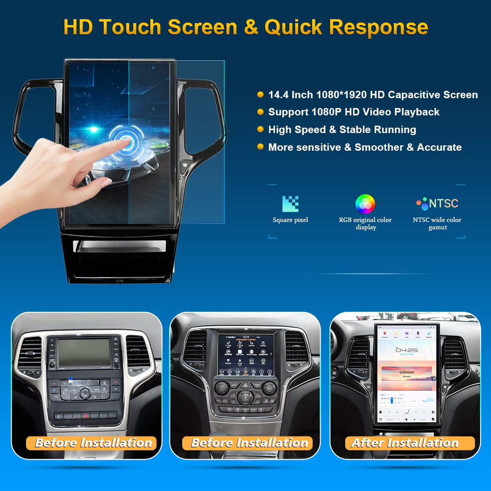 Jeep Grand Cherokee 2009-2013 13.6 Inch HD IPS Screen Android Car Stereo Radio GPS Navigation Multimedia Player Tesla Style Vertical Screen with Car Play and Android Auto, Bluetooth,FM,AM, RDS, GPS, WIFI, DSP, Audio, Video,Google, Youtube, Play Store, Netflix, Support Rear Camera,in Dash Kit