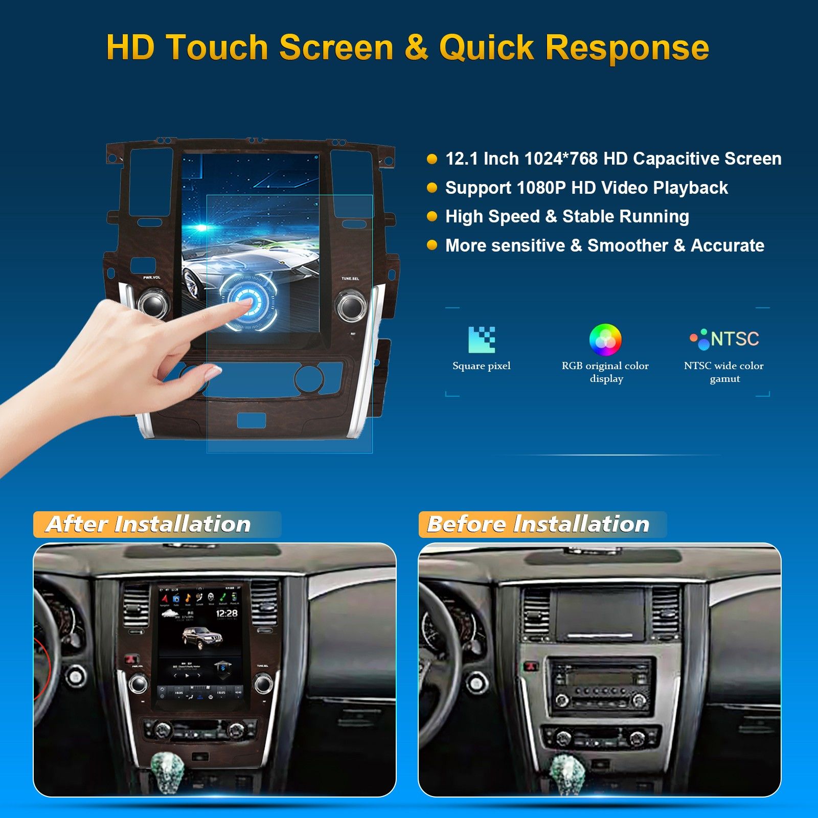 NISSAN PATROL 2010- Auto A/C 12.1 Inch HD IPS Screen Android Car Stereo Radio GPS Navigation Multimedia Player Tesla Style Vertical Screen with Car Play and Android Auto, Bluetooth,FM,AM, RDS, GPS, WIFI, DSP, Audio, Video,Google, Youtube, Play Store, Netflix, Support Rear Camera,in Dash Kit