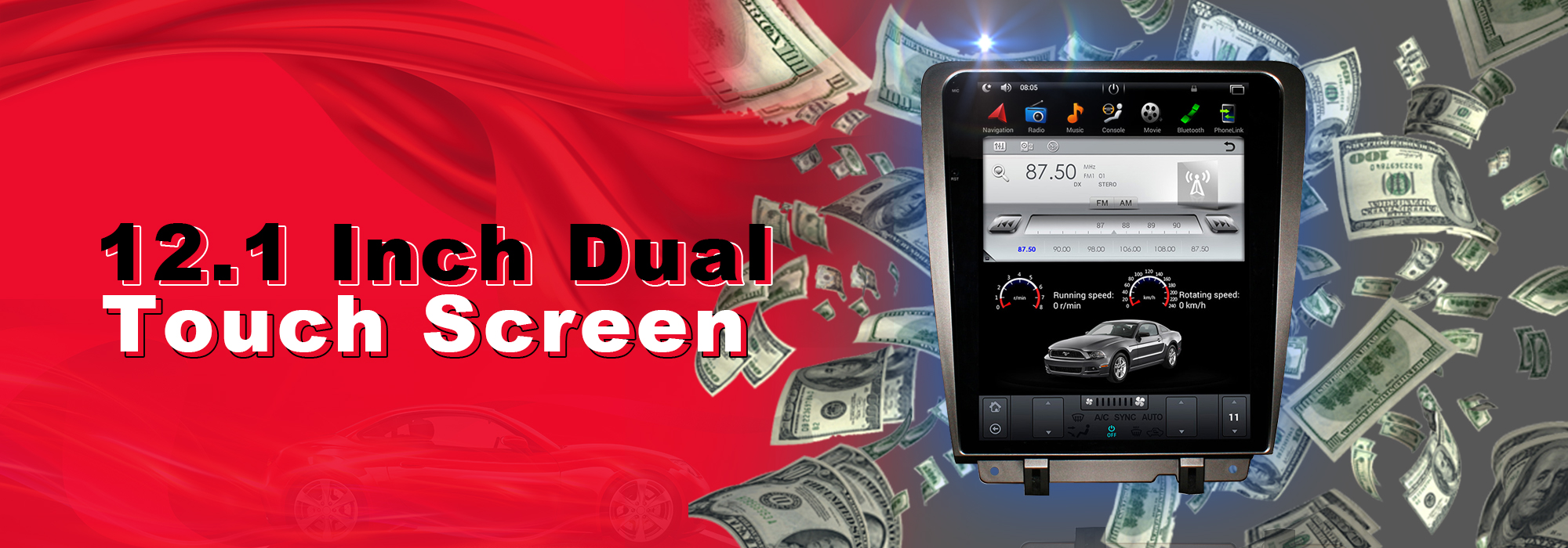CUSP Ford Mondeo Fusion MK5 2013- Manual A/C 12.1 Inch HD IPS Screen Android Car Stereo Radio GPS Navigation Multimedia Player Tablet Tesla Style Vertical Screen with Car Play Android Auto BluetoothAudi