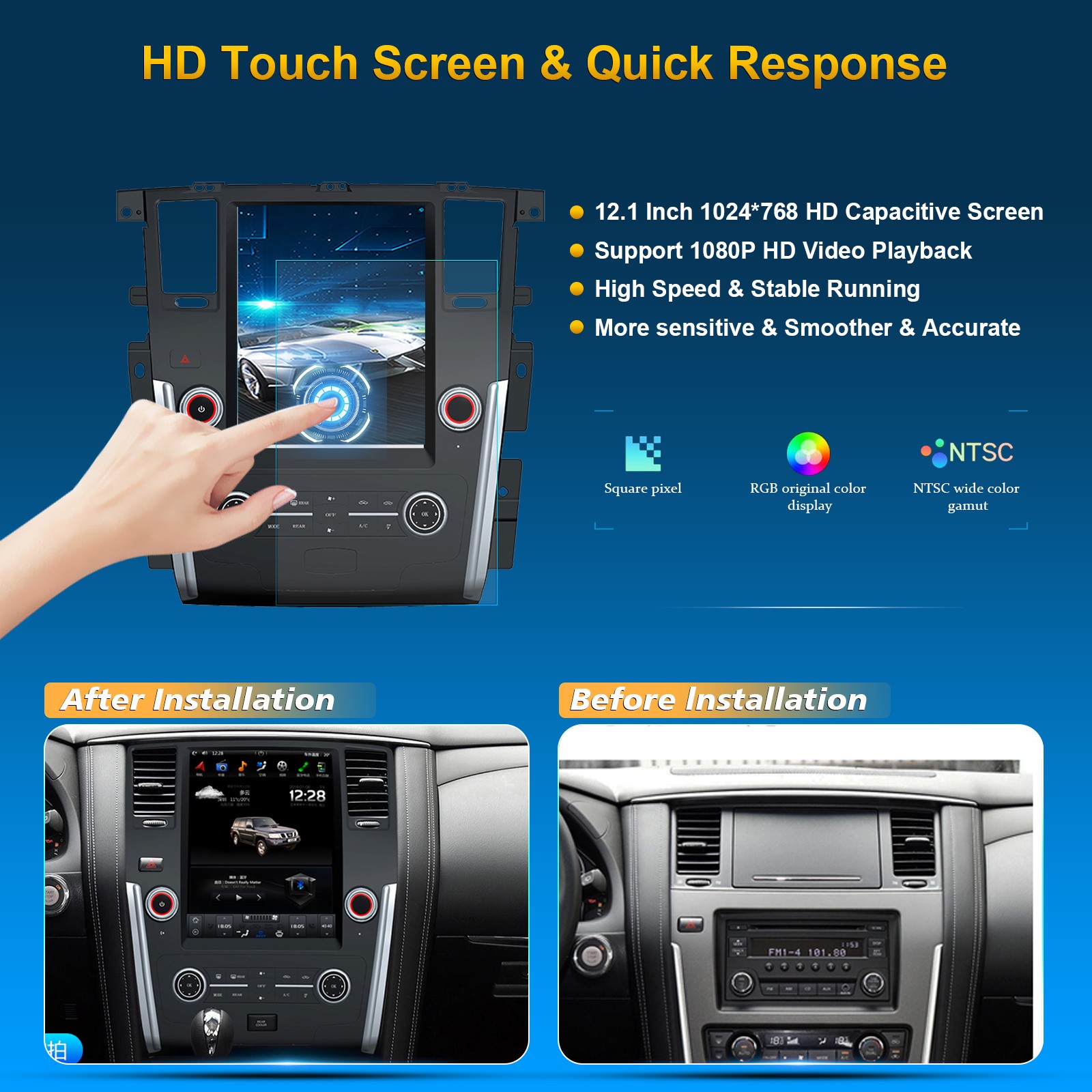 NISSAN PATROL 2010- Auto A/C/Infiniti QX80 2013- 12.1 Inch HD IPS Screen Android Car Stereo Radio GPS Navigation Multimedia Player Tesla Style Vertical Screen with Car Play and Android Auto, Bluetooth,FM,AM, RDS, GPS, WIFI, DSP, Audio, Video,Google, Youtube, Play Store, Netflix, Support Rear Camera,in Dash Kit