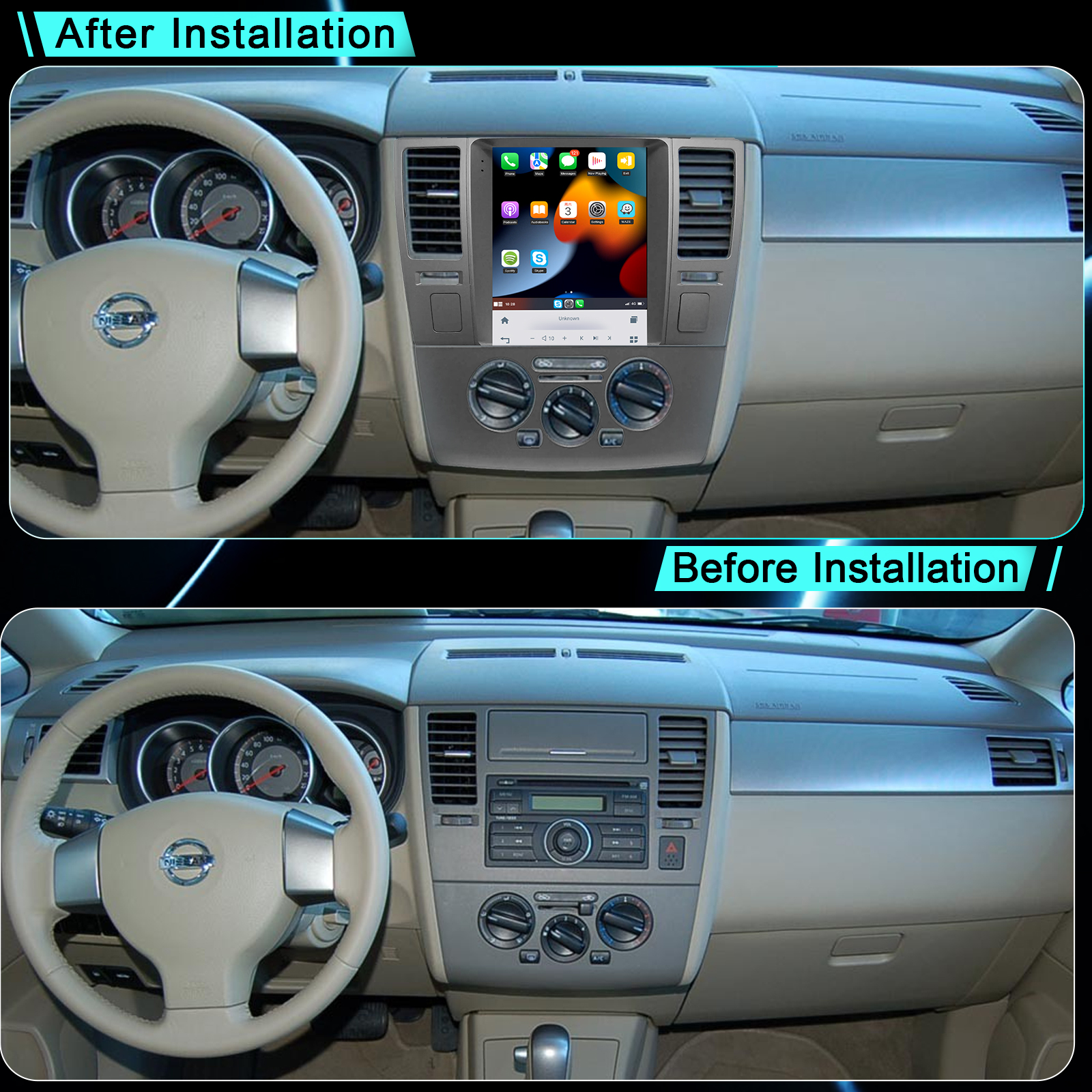 NISSAN TIIDA 2008-2011 10.4 Inch HD IPS Screen Android Car Stereo Radio GPS Navigation Multimedia Player Tesla Style Vertical Screen with Car Play and Android Auto, Bluetooth,FM,AM, RDS, GPS, WIFI, DSP, Audio, Video,Google, Youtube, Play Store, Netflix, Support Rear Camera,in Dash Kit