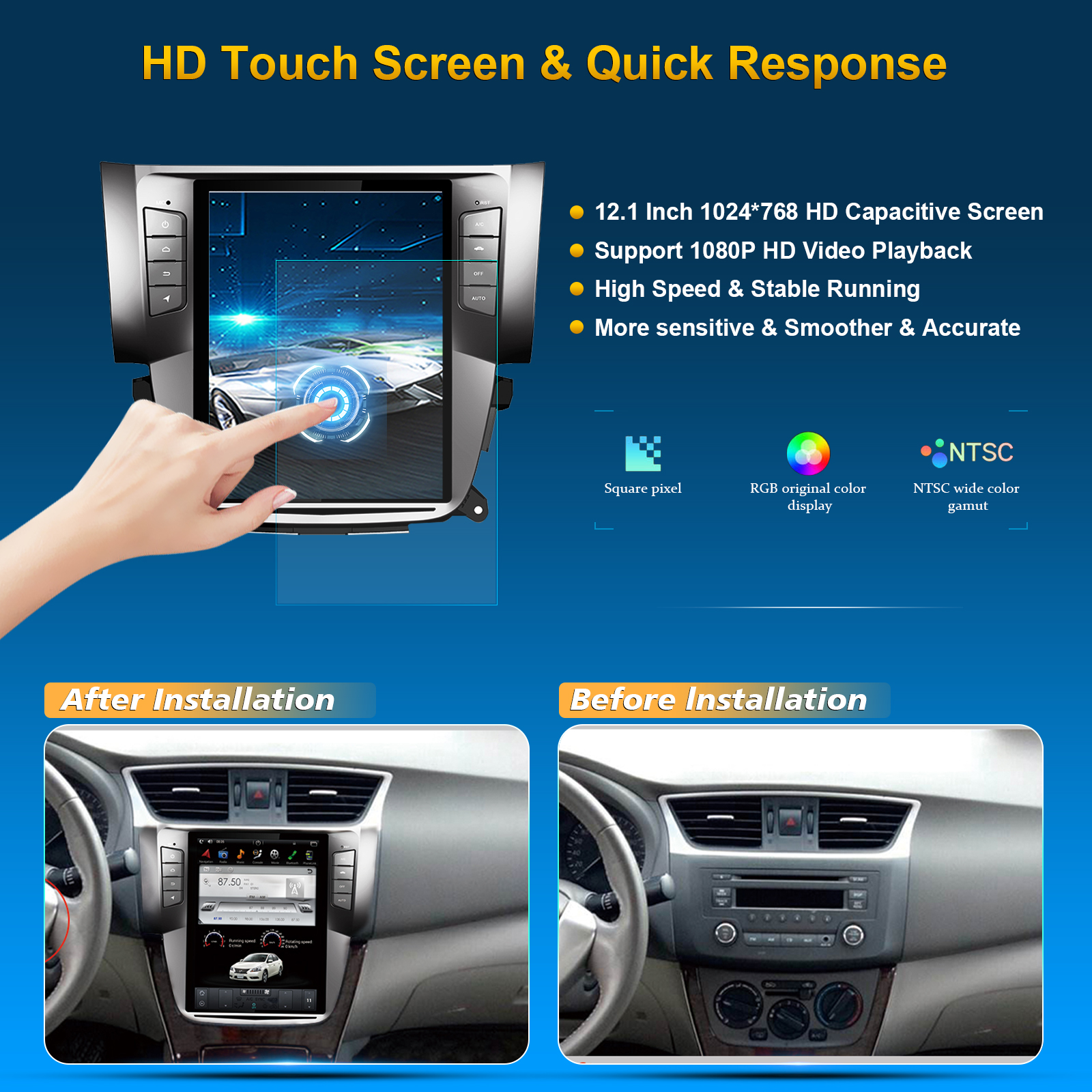 NISSAN SYLPHY 2012- 10.4 Inch HD IPS Screen Android Car Stereo Radio GPS Navigation Multimedia Player Tesla Style Vertical Screen with Car Play and Android Auto, Bluetooth,FM,AM, RDS, GPS, WIFI, DSP, Audio, Video,Google, Youtube, Play Store, Netflix, Support Rear Camera,in Dash Kit