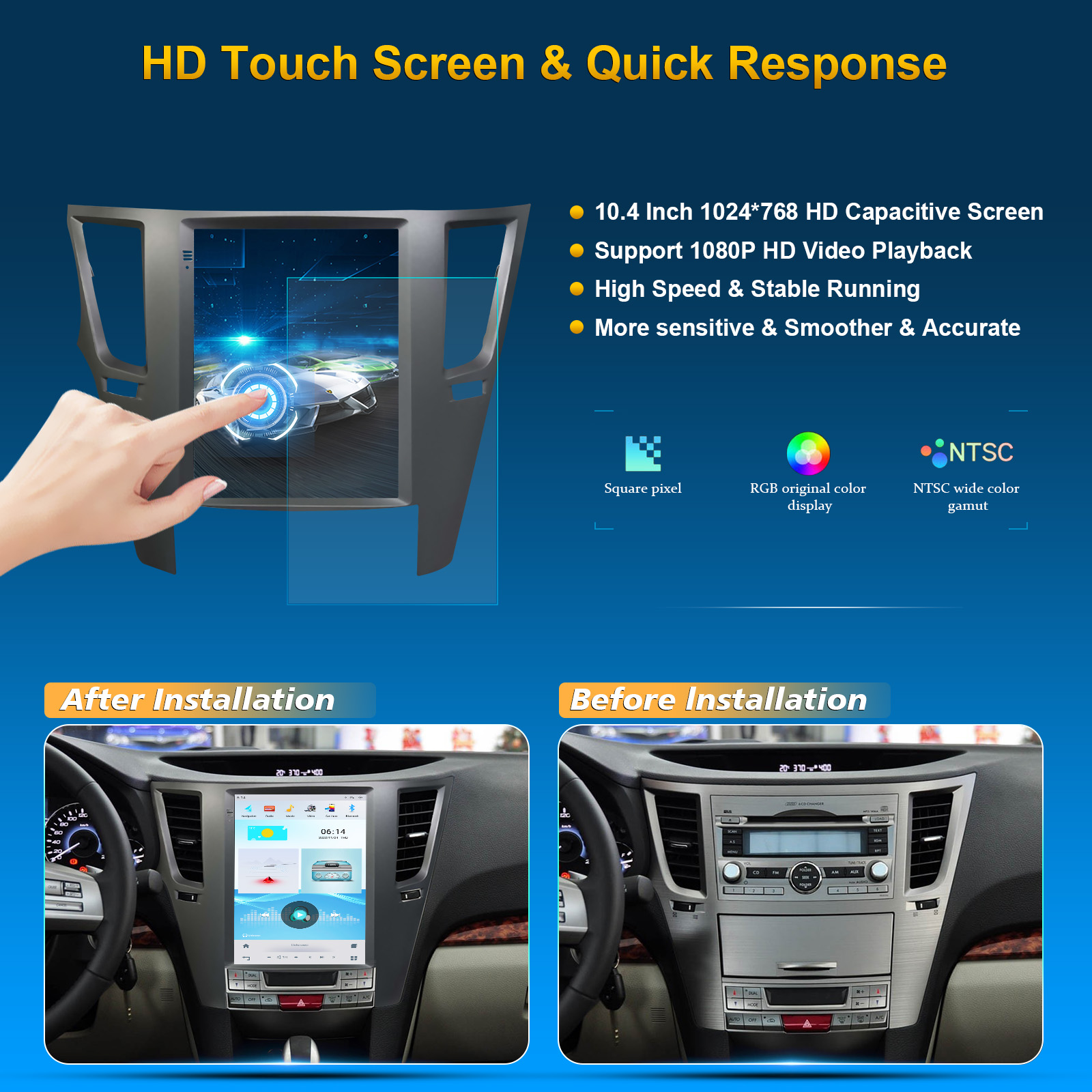 Subaru OUTBACK / LEGACY 2010-2014 10.4 Inch HD IPS Screen Android Car Stereo Radio GPS Navigation Multimedia Player Tesla Style Vertical Screen with Car Play and Android Auto, Bluetooth,FM,AM, RDS, GPS, WIFI, DSP, Audio, Video,Google, Youtube, Play Store, Netflix, Support Rear Camera,in Dash Kit