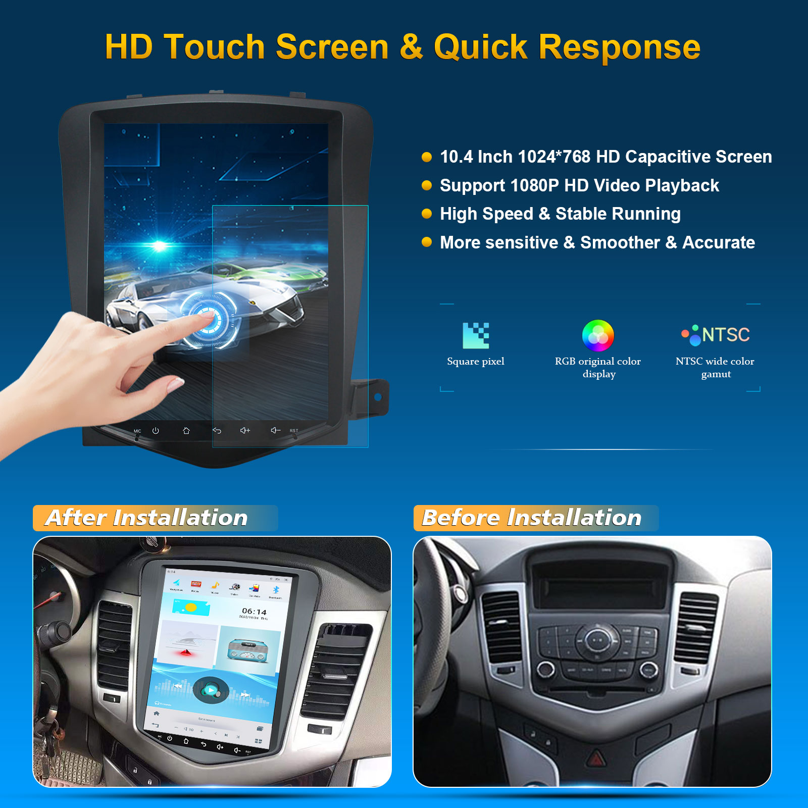 CUSP CHEVROLET CRUZE 2009- 10.4 Inch HD IPS Screen Android Car Stereo Radio GPS Navigation Multimedia Player Tablet Tesla Style Vertical Screen with Car Play and Android Auto, Bluetooth,FM,AM, RDS, GPS, WIFI, DSP, Audio, Video,Google, Youtube, Play Store, Netflix, Support Rear Camera,in Dash Kit