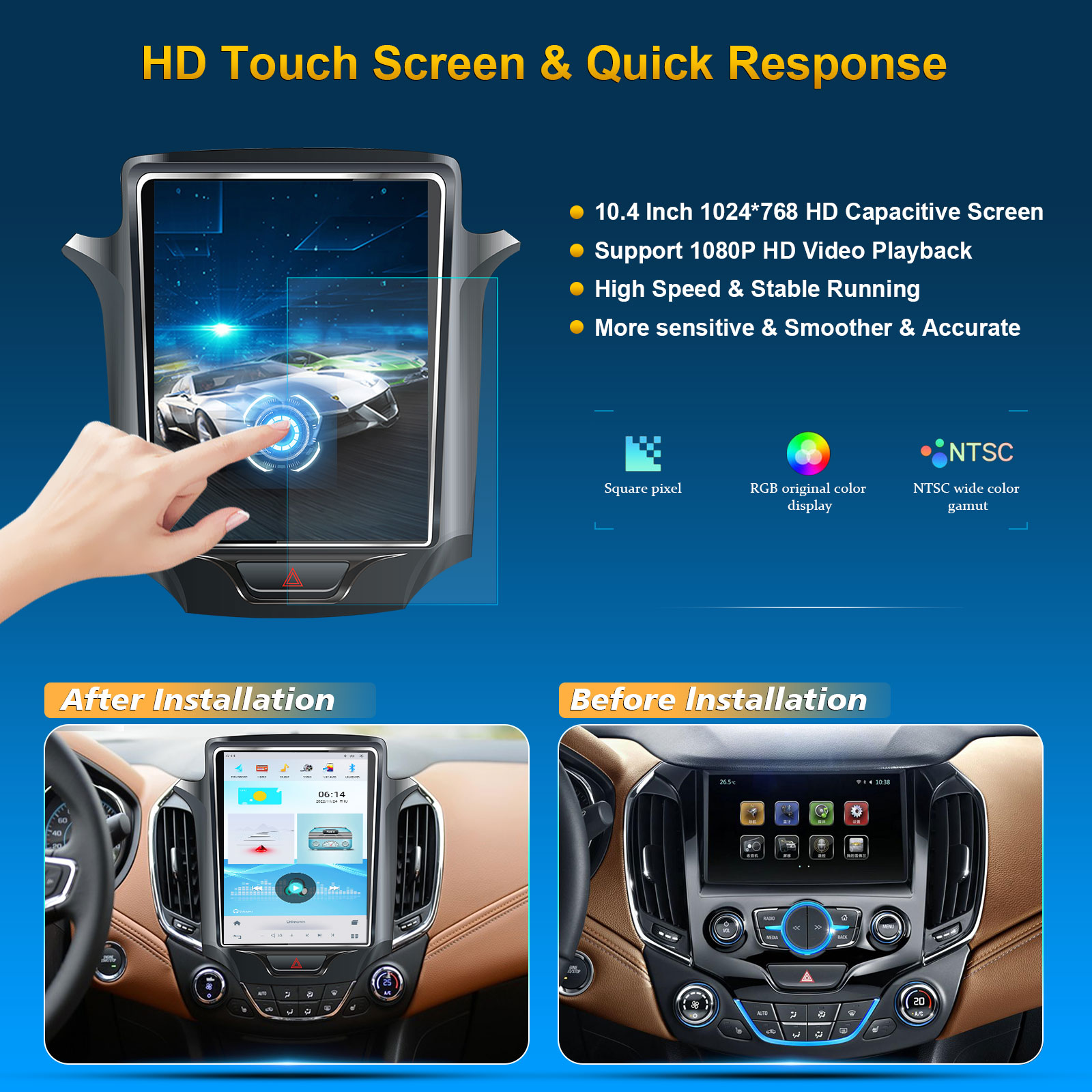 CUSP CHEVROLET CRUZE 2015- 10.4 Inch HD IPS Screen Android Car Stereo Radio GPS Navigation Multimedia Player Tablet Tesla Style Vertical Screen with Car Play and Android Auto, Bluetooth,FM,AM, RDS, GPS, WIFI, DSP, Audio, Video,Google, Youtube, Play Store, Netflix, Support Rear Camera,in Dash Kit