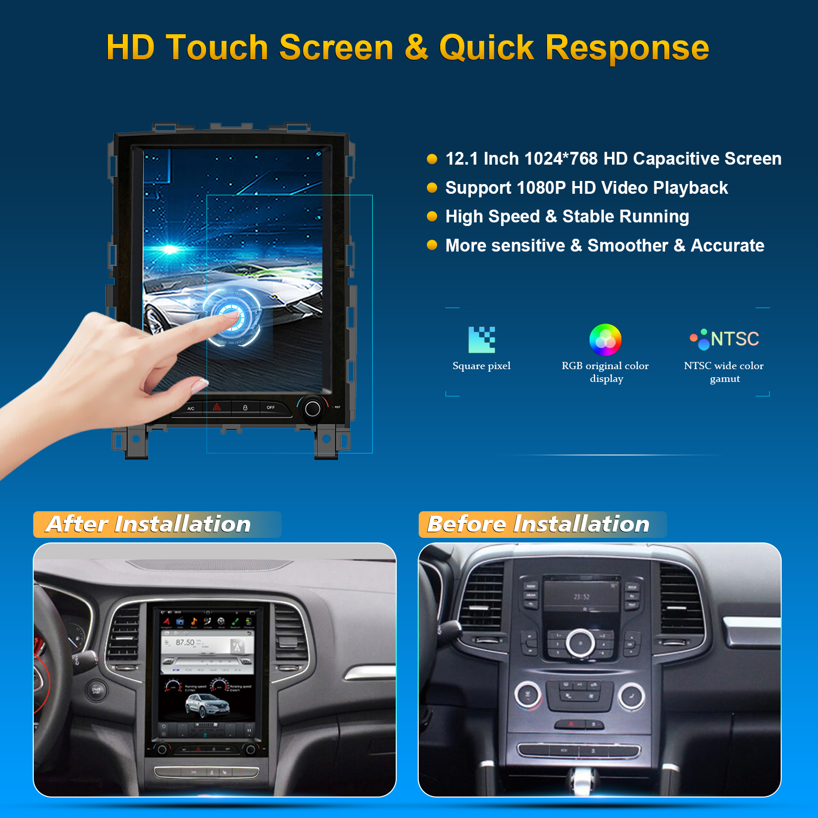 Renault KOLEOS 2016- Low level 10.4 Inch HD IPS Screen Android Car Stereo Radio GPS Navigation Multimedia Player Tesla Style Vertical Screen with Car Play , and Android Auto, Bluetooth,FM,AM,RDS, GPS, WIFI, DSP, Audio, Video,Google, Youtube, Play Store, Netflix, Support Rear Camera,in Dash Kit