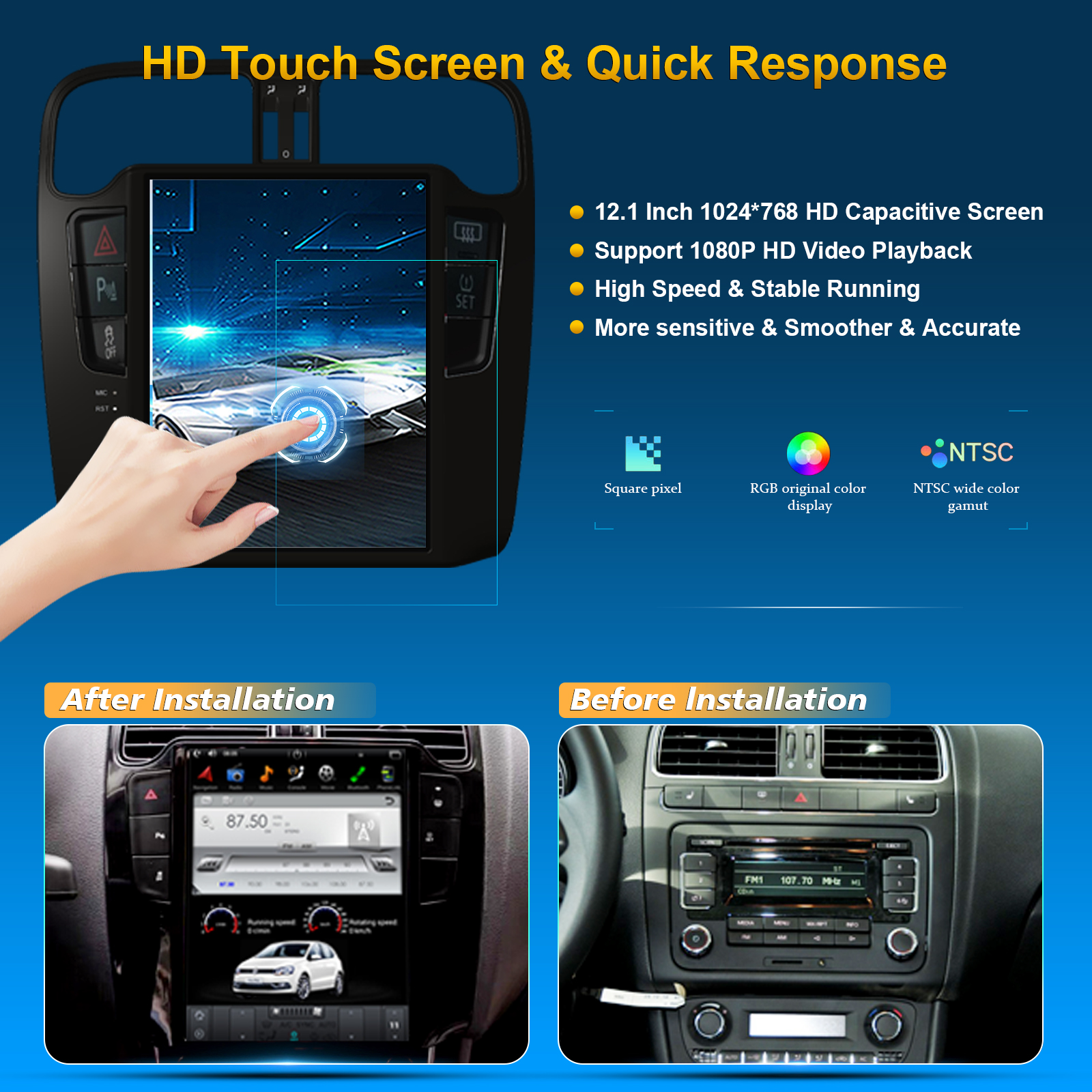VW POLO 2011-2016 10.4 Inch HD IPS Screen Android Car Stereo Radio GPS Navigation Multimedia Player Tesla Style Vertical Screen with Car Play and Android Auto, Bluetooth,FM,AM, RDS, GPS, WIFI, DSP, Audio, Video,Google, Youtube, Play Store, Netflix, Support Rear Camera,in Dash Kit
