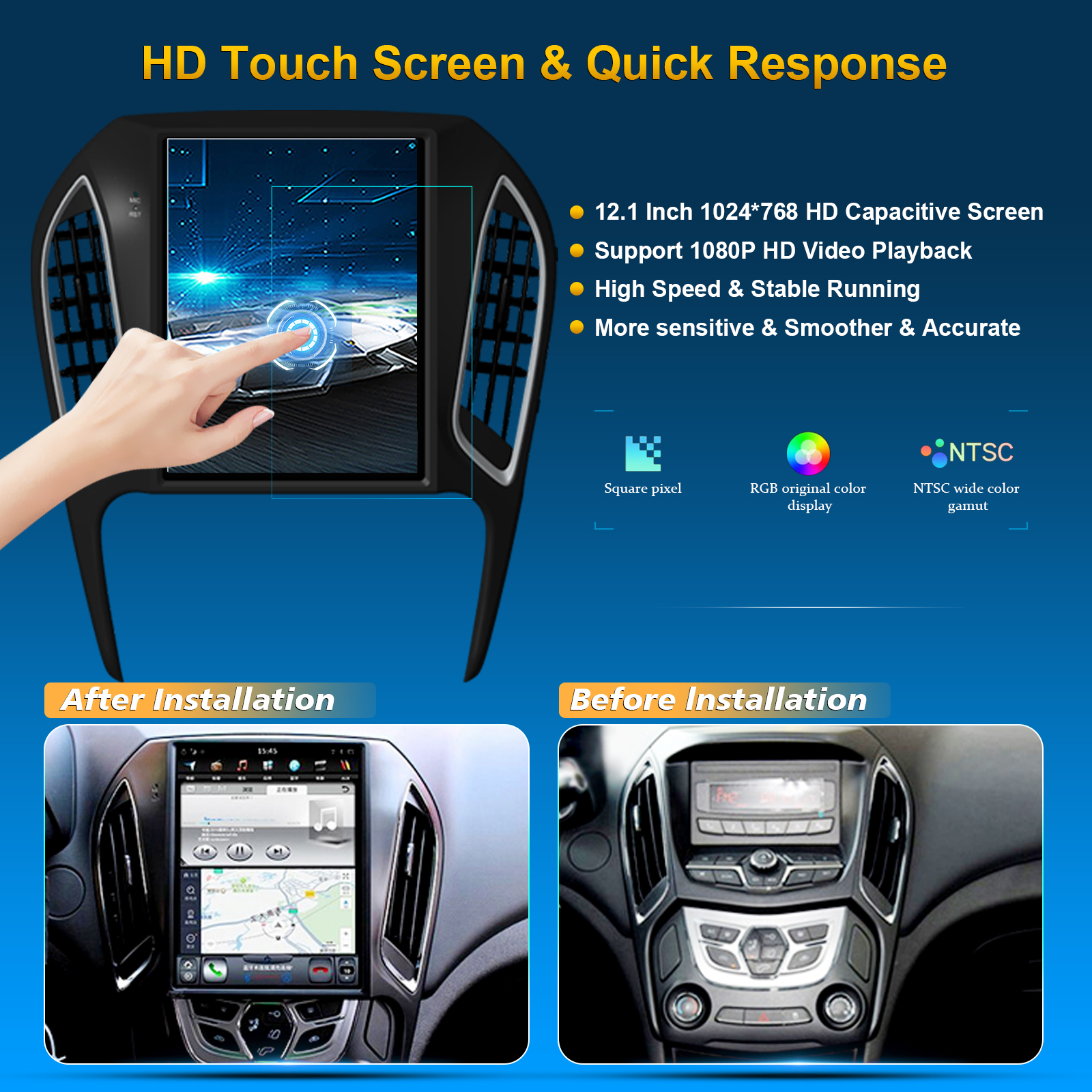 CHERY ARRIZO 5 2016- 10.4 Inch HD IPS Screen Android Car Stereo Radio GPS Navigation Multimedia Player Tesla Style Vertical Screen with Car Play and Android Auto, Bluetooth,FM,AM, RDS, GPS, WIFI, DSP, Audio, Video,Google, Youtube, Play Store, Netflix, Support Rear Camera,in Dash Kit