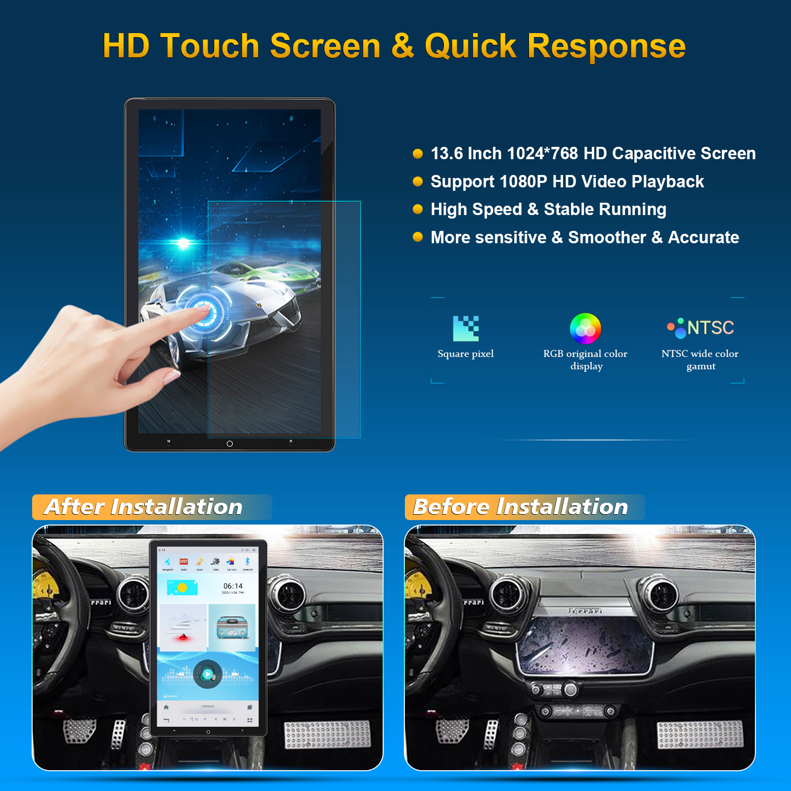 CUSP Universal Adjustable Front Panel 13.3 Inch HD IPS Screen Android Car Stereo Radio GPS Navigation Multimedia Player Tablet Tesla Style Vertical Screen with Car Play and Android Auto, Bluetooth,FM,AM, RDS, GPS, WIFI, DSP, Audio, Video,Google, Youtube, Play Store, Netflix, Support Rear Camera,in Dash Kit