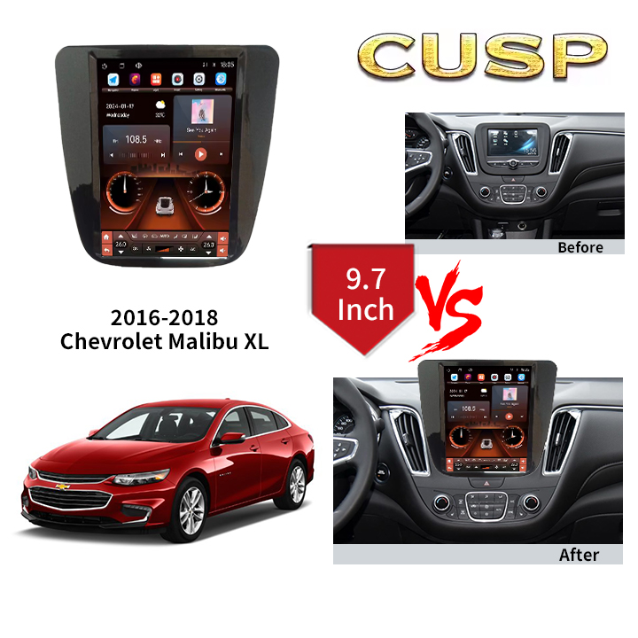 CUSP CHEVROLET MALIBU XL 2016-2018 9.7 Inch HD IPS Screen Android Car Stereo Radio GPS Navigation Multimedia Player Tesla Style Vertical Screen with Car Play and Android Auto, Bluetooth,FM,AM, RDS, GPS, WIFI, DSP, Audio, Video,Google, Youtube, Play Store, Netflix, Support Rear Camera,in Dash Kit