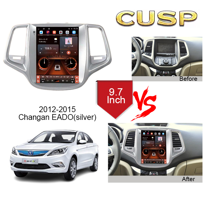 2012-2015 CHANGAN EADO 9.7 Inch HD IPS Screen Android Car Stereo Radio GPS Navigation Multimedia Player Tesla Style Vertical Screen with Car Play and Android Auto, Bluetooth,FM,AM, RDS, GPS, WIFI, DSP, Audio, Video,Google, Youtube, Play Store, Netflix, Support Rear Camera,in Dash Kit