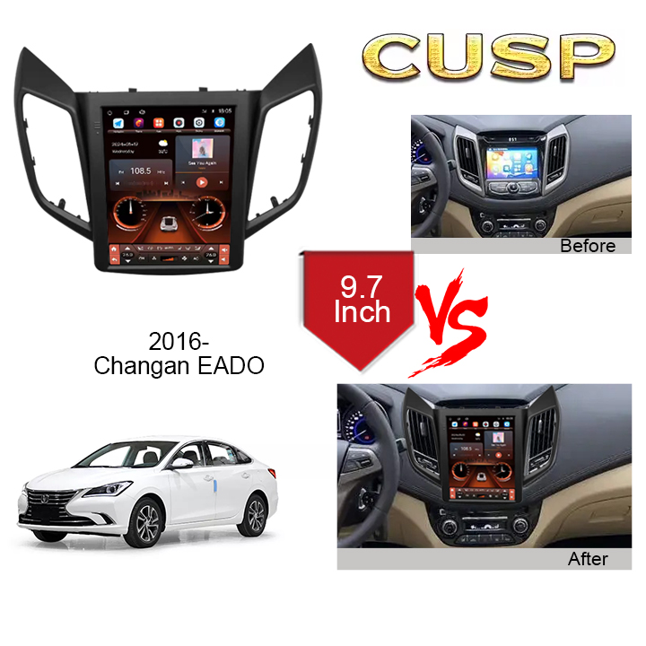 2016- CHANGAN EADO 9.7 Inch HD IPS Screen Android Car Stereo Radio GPS Navigation Multimedia Player Tesla Style Vertical Screen with Car Play and Android Auto, Bluetooth,FM,AM, RDS, GPS, WIFI, DSP, Audio, Video,Google, Youtube, Play Store, Netflix, Support Rear Camera,in Dash Kit