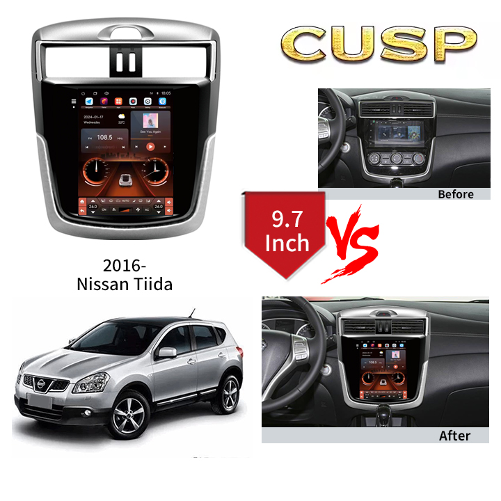 2016- NISSAN TIIDA 9.7 Inch HD IPS Screen Android Car Stereo Radio GPS Navigation Multimedia Player Tesla Style Vertical Screen with Car Play and Android Auto, Bluetooth,FM,AM, RDS, GPS, WIFI, DSP, Audio, Video,Google, Youtube, Play Store, Netflix, Support Rear Camera,in Dash Kit