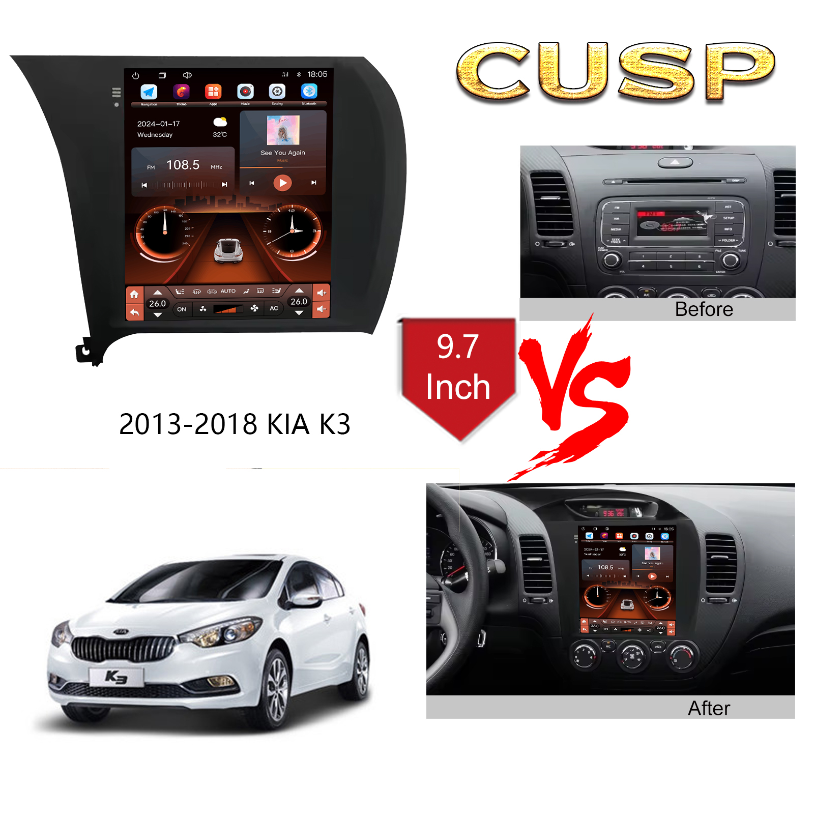 CUSP KIA K3 2013-2018 9.7 Inch HD IPS Screen Android Car Stereo Radio GPS Navigation Multimedia Player Tablet Tesla Style Vertical Screen with Car Play and Android Auto, Bluetooth,FM,AM, RDS, GPS, WIFI, DSP, Audio, Video,Google, Youtube, Play Store, Netflix, Support Rear Camera,in Dash Kit