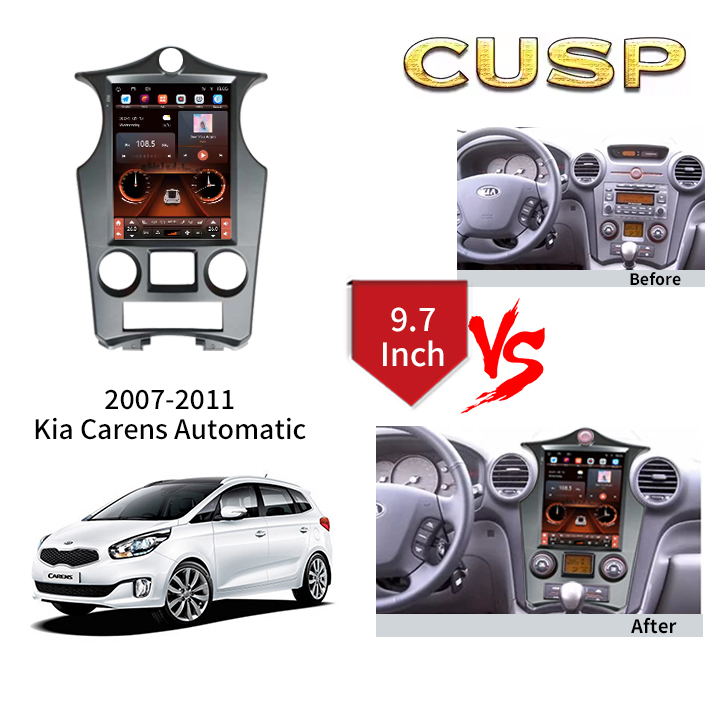 CUSP KIA Carens AUTO 2007-2011 9.7 Inch HD IPS Screen Android Car Stereo Radio GPS Navigation Multimedia Player Tablet Tesla Style Vertical Screen with Car Play and Android Auto, Bluetooth,FM,AM, RDS, GPS, WIFI, DSP, Audio, Video,Google, Youtube, Play Store, Netflix, Support Rear Camera,in Dash Kit