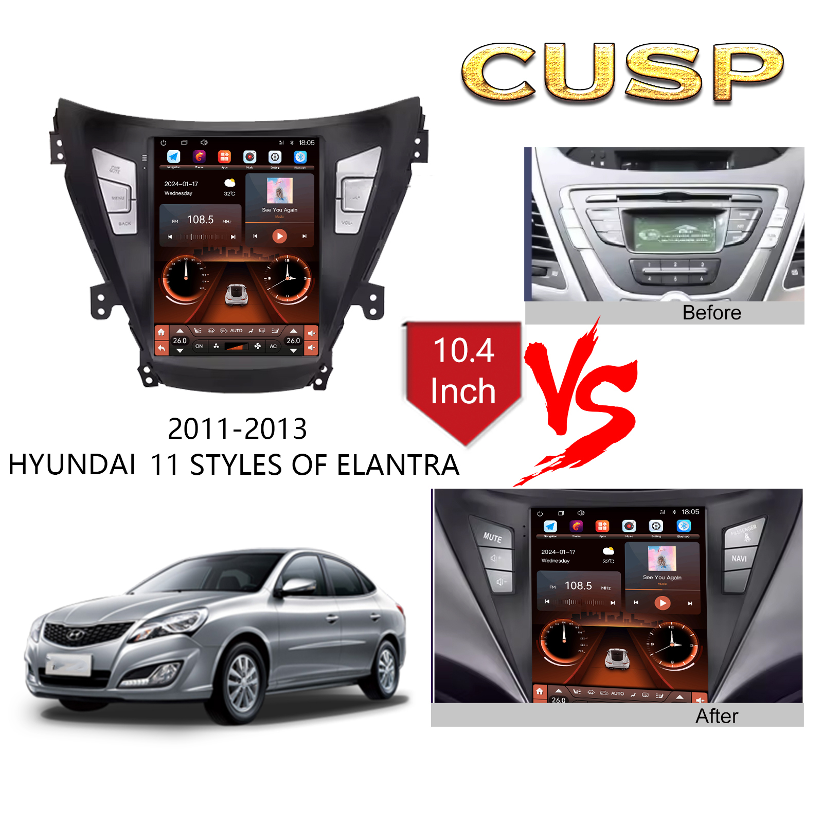 CUSP HYUNDAI ELANTRA 2011-2013 9.7 Inch HD IPS Screen Android Car Stereo Radio GPS Navigation Multimedia Player Tablet Tesla Style Vertical Screen with Car Play and Android Auto, Bluetooth,FM,AM, RDS, GPS, WIFI, DSP, Audio, Video,Google, Youtube, Play Store, Netflix, Support Rear Camera,in Dash Kit