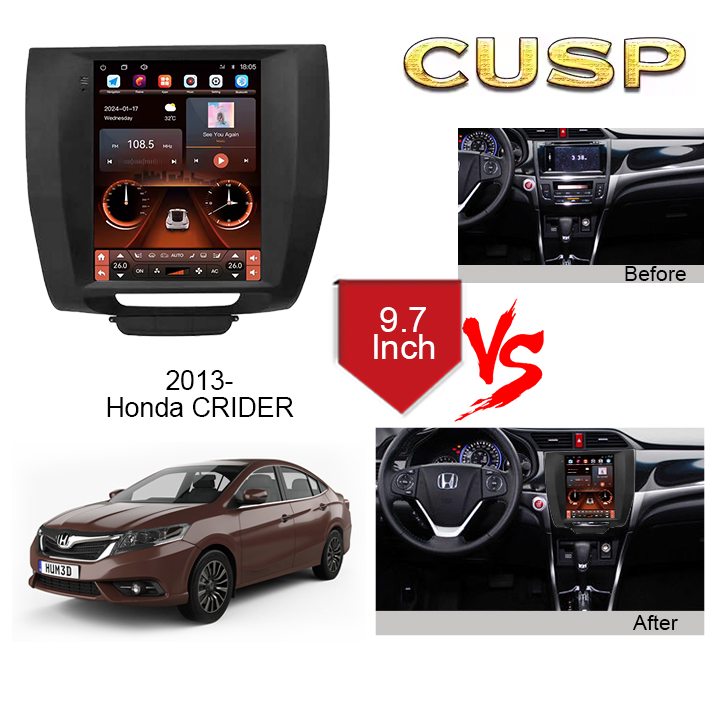 CUSP HONDA CRIDER 2014-2017 9.7 Inch HD IPS Screen Android Car Stereo Radio GPS Navigation Multimedia Player Tablet Tesla Style Vertical Screen with Car Play and Android Auto, Bluetooth,FM,AM, RDS, GPS, WIFI, DSP, Audio, Video,Google, Youtube, Play Store, Netflix, Support Rear Camera,in Dash Kit