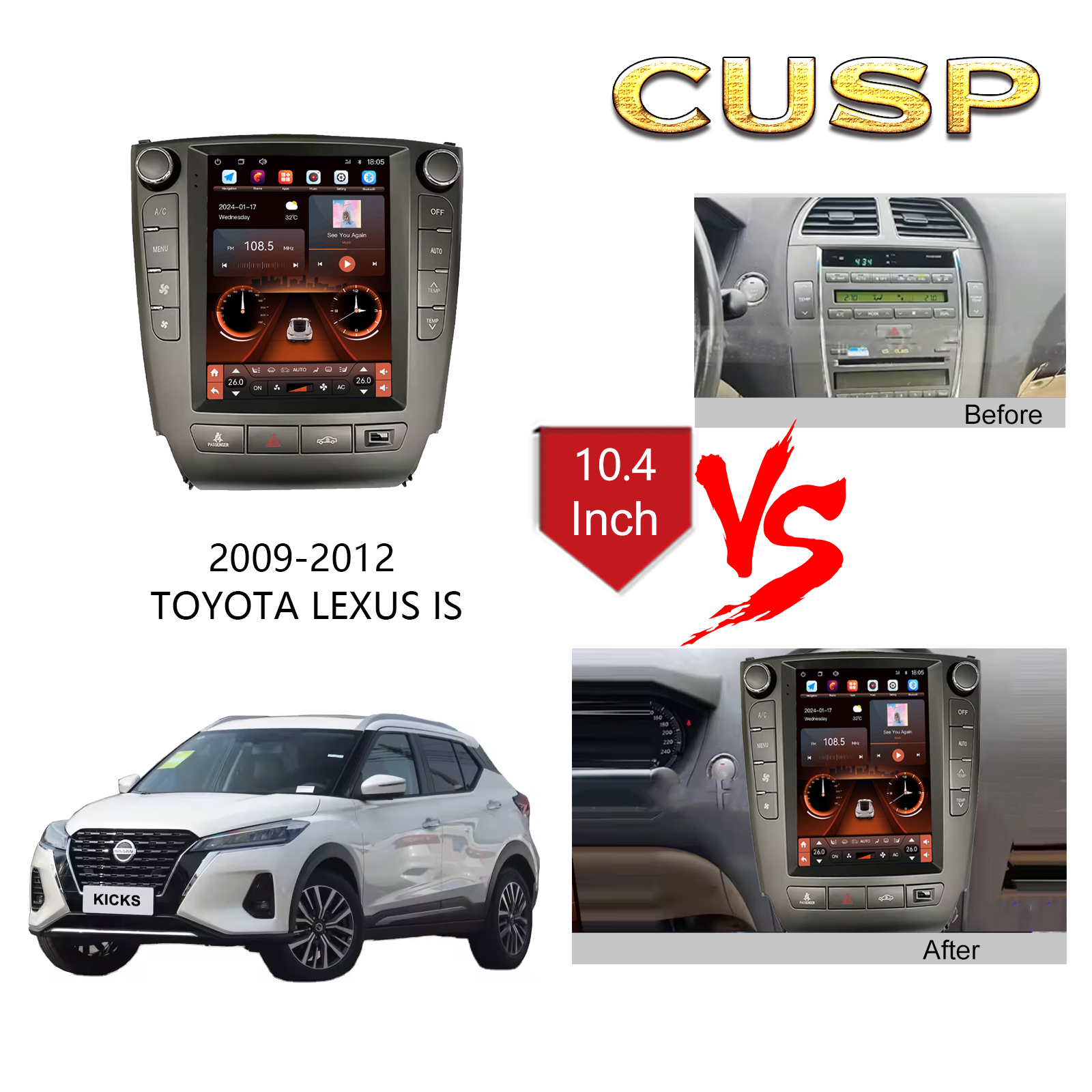 CUSP TOYOTA LEXUS IS 2006-2012 9.7 Inch HD IPS Screen Android Car Stereo Radio GPS Navigation Multimedia Player Tablet Tesla Style Vertical Screen with Car Play and Android Auto, Bluetooth,FM,AM, RDS, GPS, WIFI, DSP, Audio, Video,Google, Youtube, Play Store, Netflix, Support Rear Camera,in Dash Kit