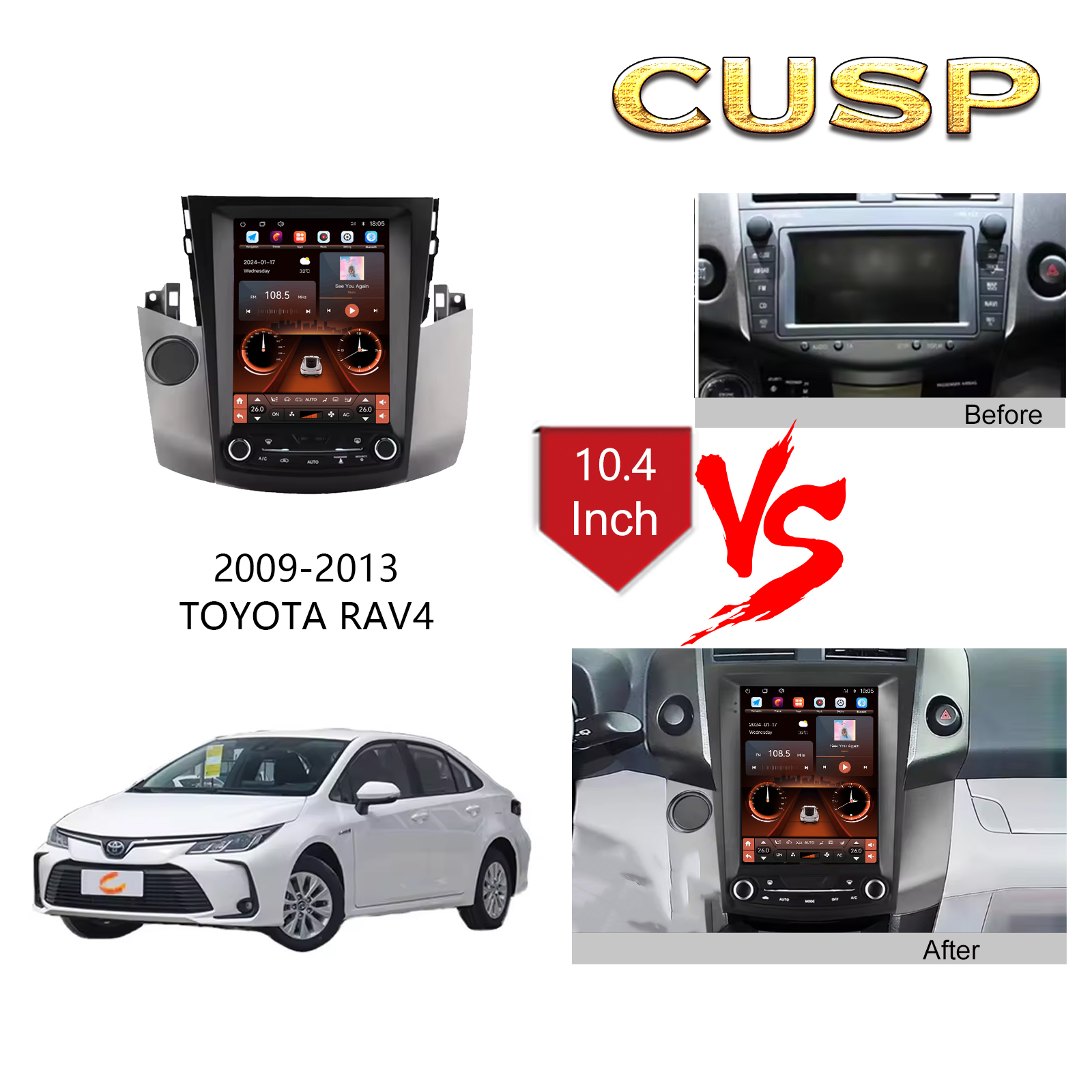CUSP TOYOTA RAV4 2009-2013 9.7 Inch HD IPS Screen Android Car Stereo Radio GPS Navigation Multimedia Player Tablet Tesla Style Vertical Screen with Car Play and Android Auto, Bluetooth,FM,AM, RDS, GPS, WIFI, DSP, Audio, Video,Google, Youtube, Play Store, Netflix, Support Rear Camera,in Dash Kit