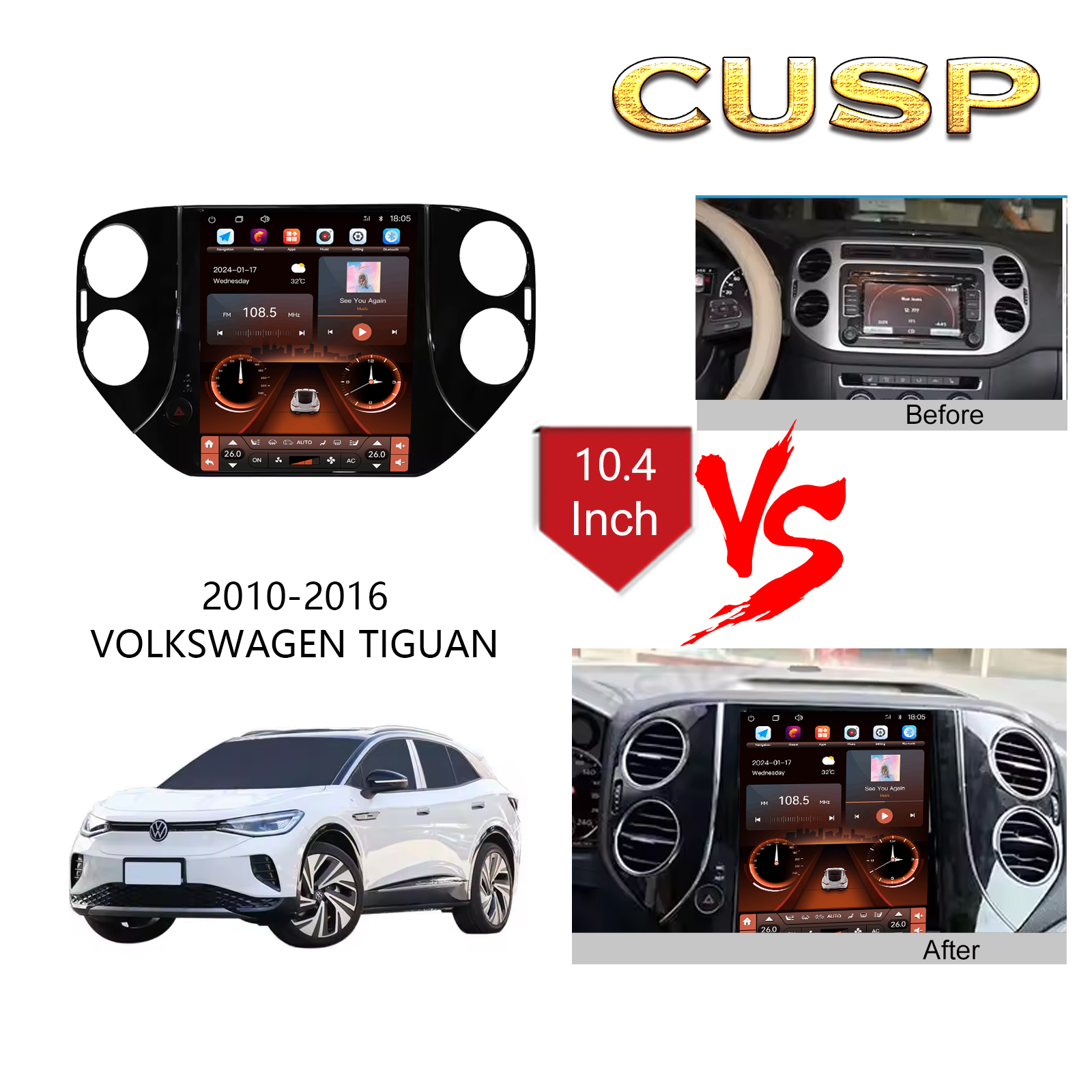 VOLKSWAGEN TIGUAN 2010-2016 9.7 Inch HD IPS Screen Android Car Stereo Radio GPS Navigation Multimedia Player Tesla Style Vertical Screen with Car Play and Android Auto, Bluetooth,FM,AM, RDS, GPS, WIFI, DSP, Audio, Video,Google, Youtube, Play Store, Netflix, Support Rear Camera,in Dash Kit