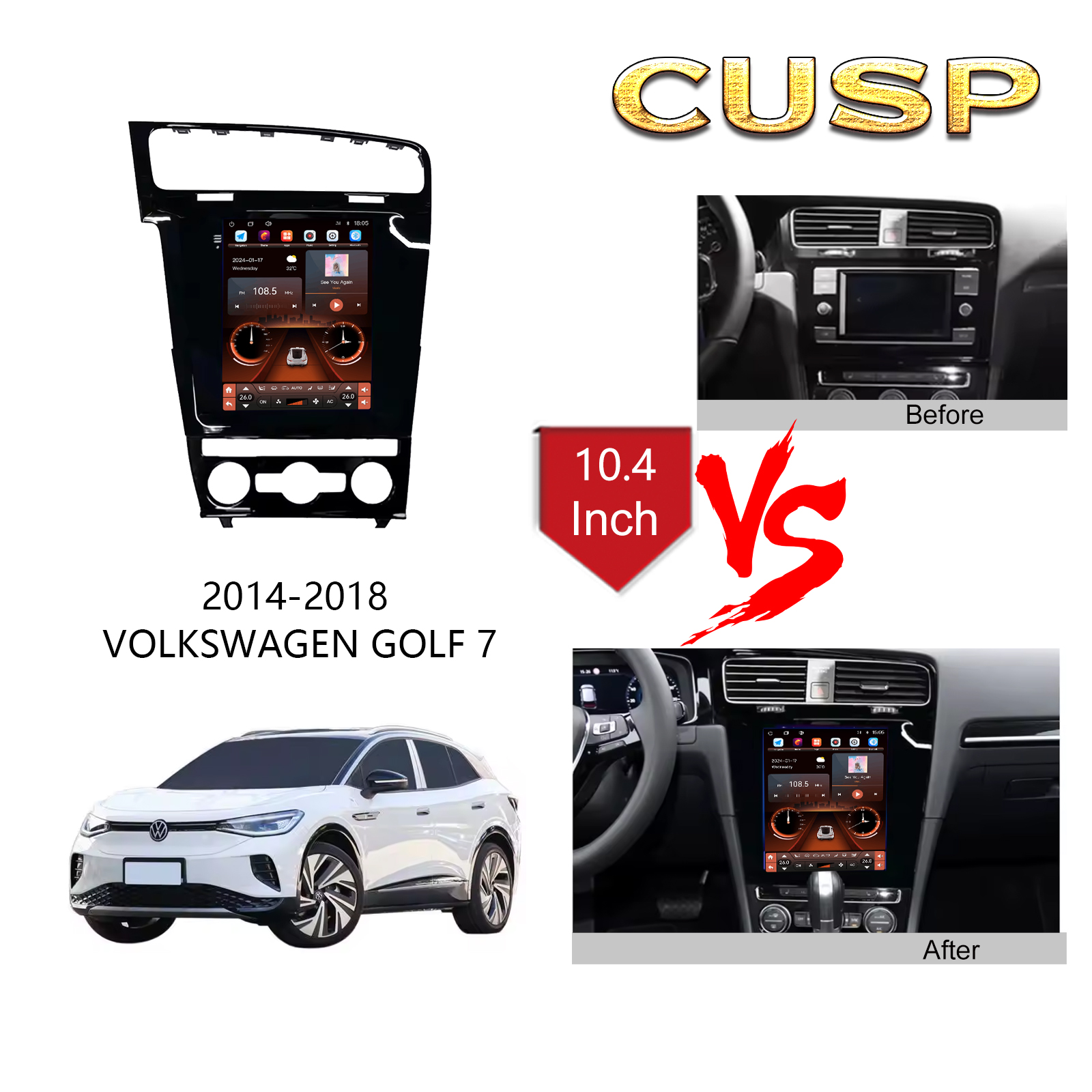 VOLKSWAGEN GOLF 7 2014-2018 9.7 Inch HD IPS Screen Android Car Stereo Radio GPS Navigation Multimedia Player Tesla Style Vertical Screen with Car Play and Android Auto, Bluetooth,FM,AM, RDS, GPS, WIFI, DSP, Audio, Video,Google, Youtube, Play Store, Netflix, Support Rear Camera,in Dash Kit