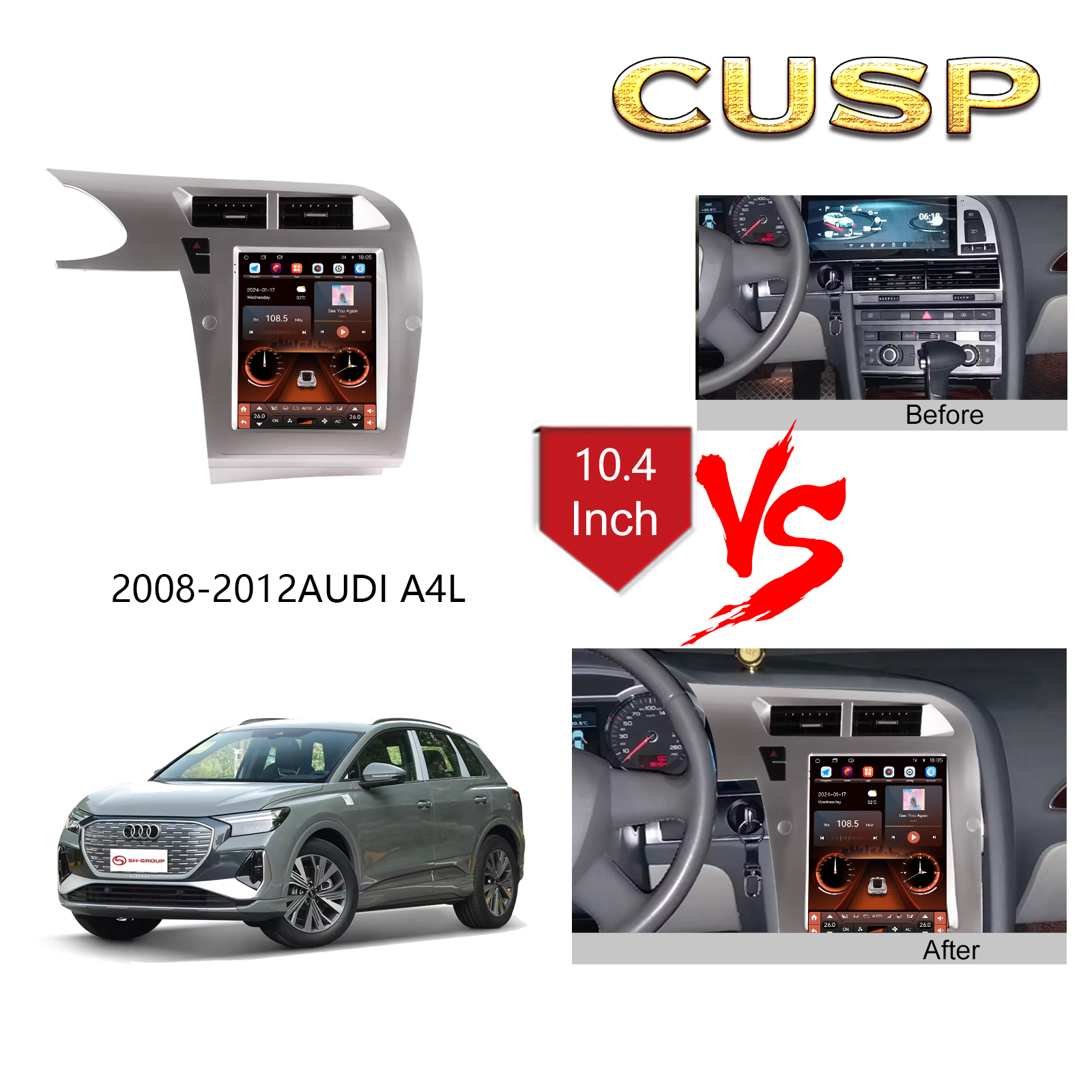 CUSP AUDI A4 LHD 2009-2012 9.7 Inch HD IPS Screen Android Car Stereo Radio GPS Navigation Multimedia Player Tablet Tesla Style Vertical Screen with Car Play and Android Auto, Bluetooth,FM,AM, RDS, GPS, WIFI, DSP, Audio, Video,Google, Youtube, Play Store, Netflix, Support Rear Camera,in Dash Kit