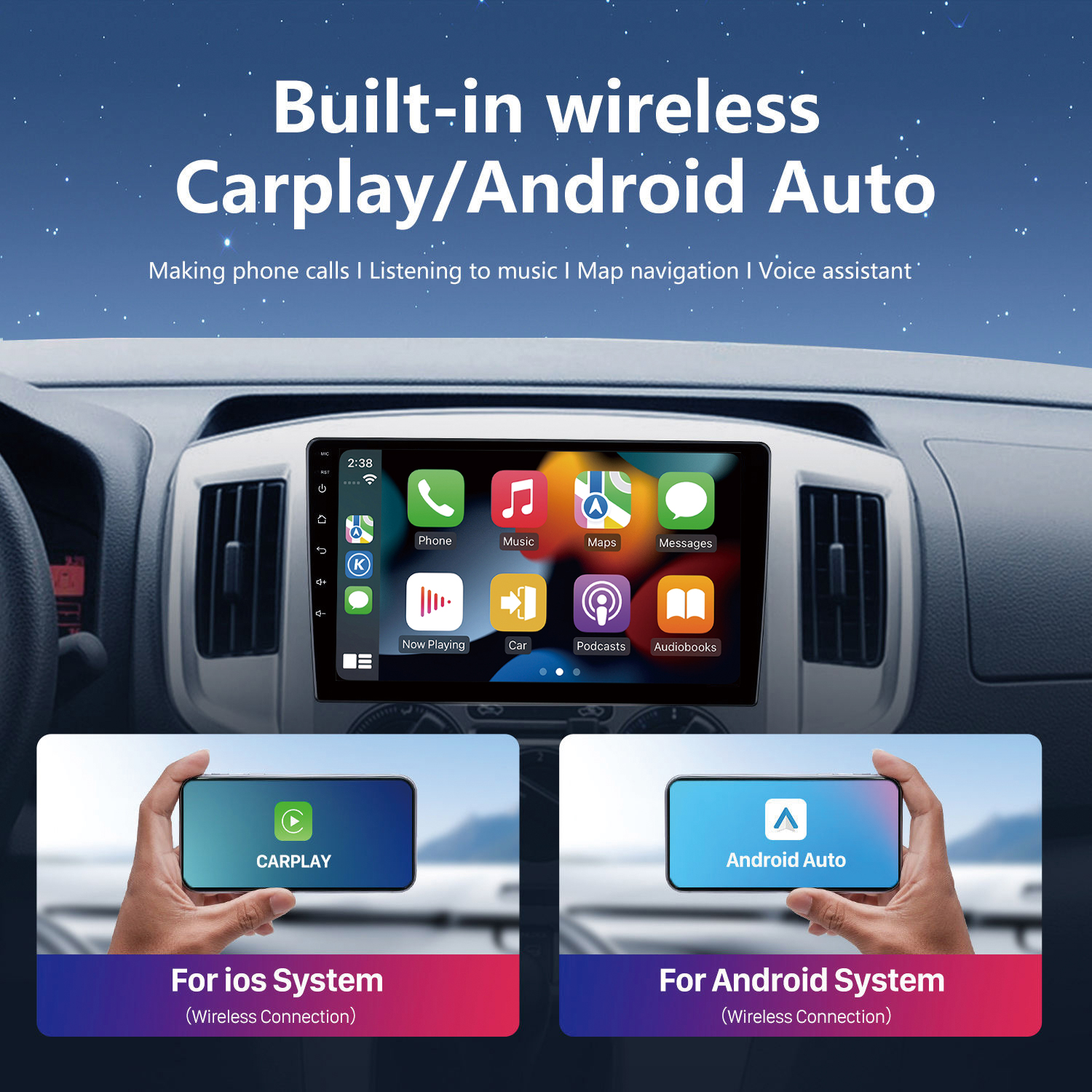 Mirror Link, support iphone wireless projection, android phone wire and wireless projection screen.