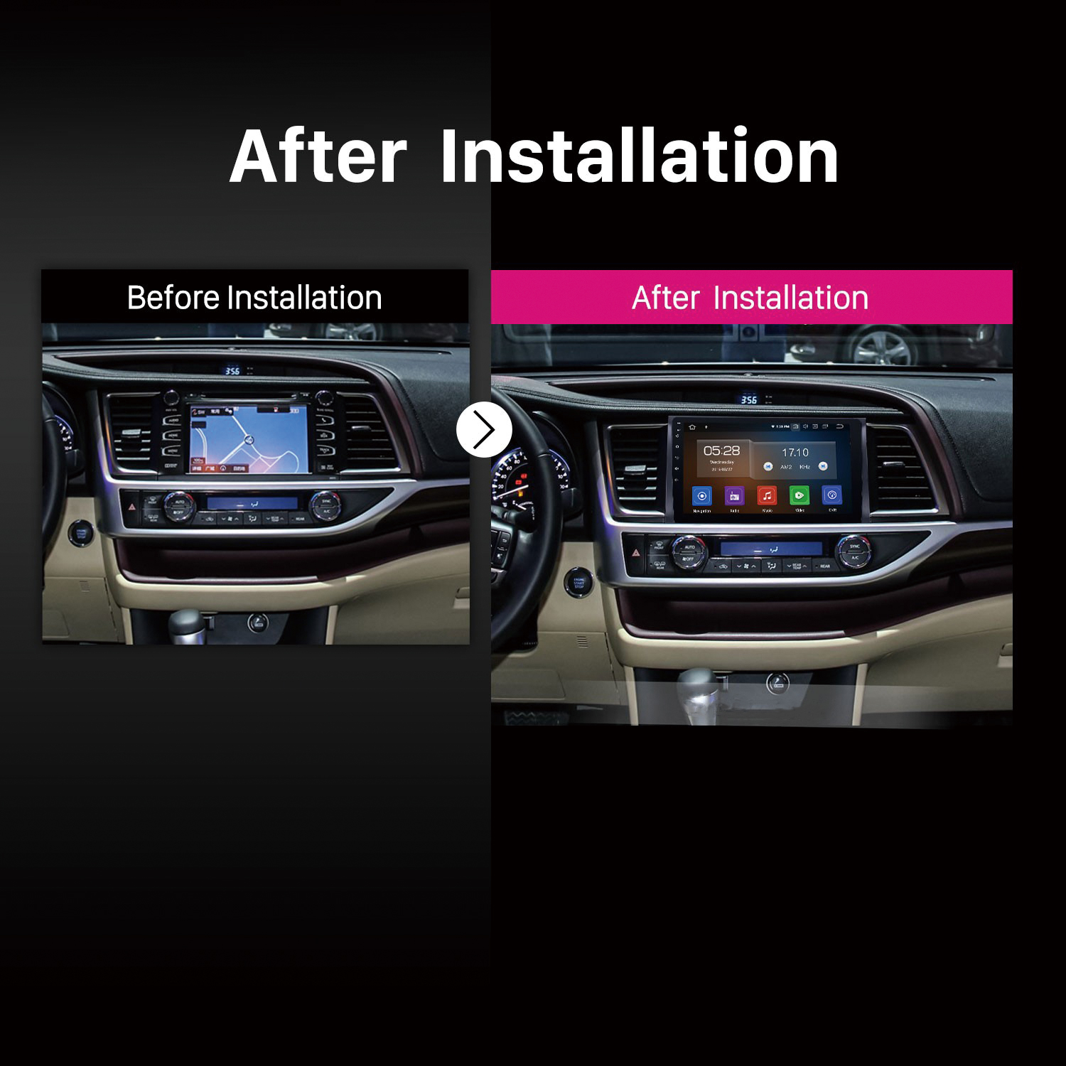 CUSP Toyota Highlander 2014-2019 10.1 Inch HD IPS Screen Android Car Stereo Radio GPS Navigation Multimedia Player Tablet with Car Play and Android Auto, Bluetooth,FM,AM, RDS, GPS, WIFI, DSP, Audio