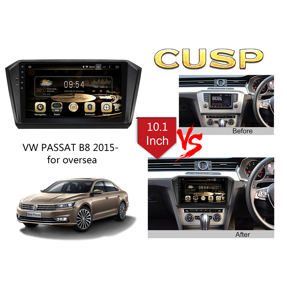 CUSP VW PASSAT B8 2015- for oversea 10.1 Inch HD IPS Screen Android Car Stereo Radio GPS Navigation Multimedia Player Tablet with Car Play and Android Auto, Bluetooth,FM,AM, RDS, GPS, WIFI, DSP, Audio, Video,Google, Youtube, Play Store, Netflix, Support Rear Camera,in Dash Kit