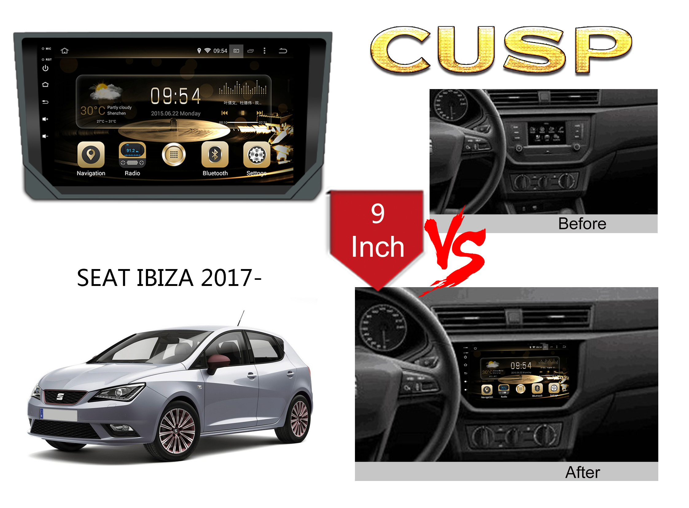 CUSP Seat Ibiza 2017- 9 Inch HD IPS Screen Android Car Stereo Radio GPS Navigation Multimedia Player Tablet with Car Play and Android Auto, Bluetooth,FM,AM, RDS, GPS, WIFI, DSP, Audio, Video