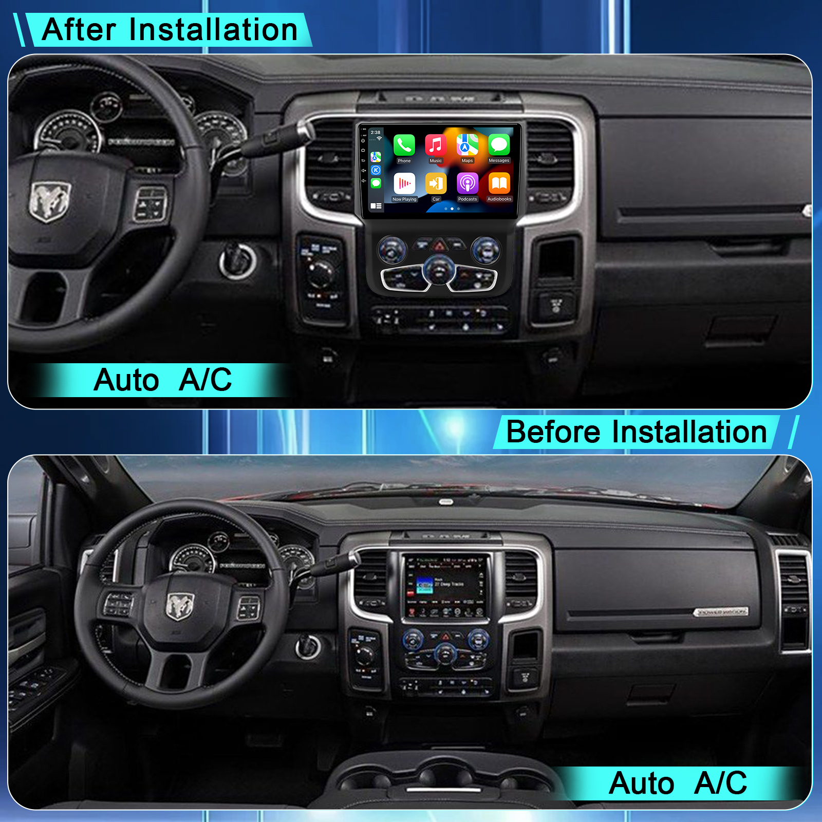 CUSP Dodge RAM Trucks pickup 1500 2500 3500 2012-2018 Auto A/C 9 Inch HD IPS Screen Android Car Stereo Radio GPS Navigation Multimedia Player Tablet with Car Play and Android Auto, Bluetooth,FM,AM, RDS, GPS, WIFI, DSP, Audio, Video,Google, Youtube, Play Store, Netflix, Support Rear Camera,in Dash Kit